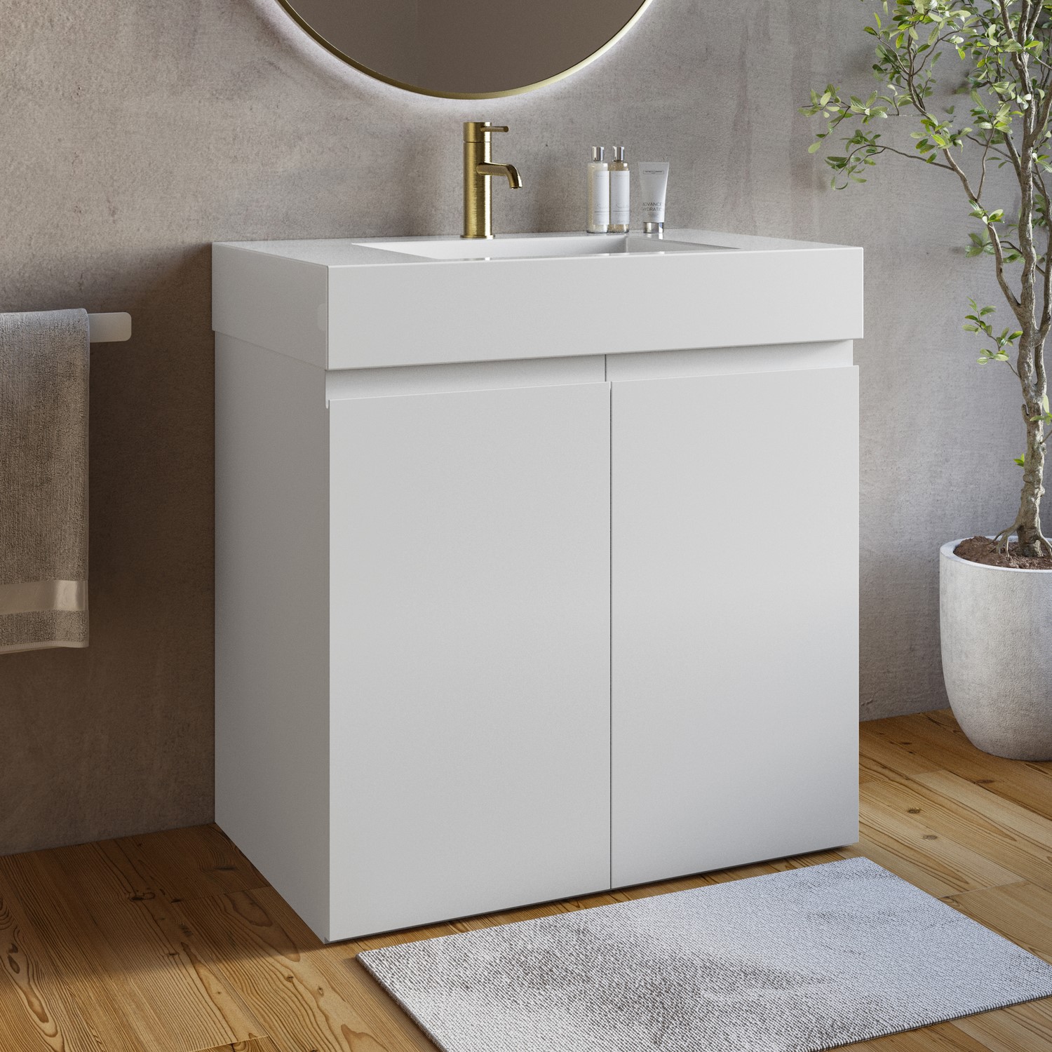 Gloss White Resin Basin: The Vanity comes with a inset basin, which is easy to clean and reflects light to brighten compact spaces.