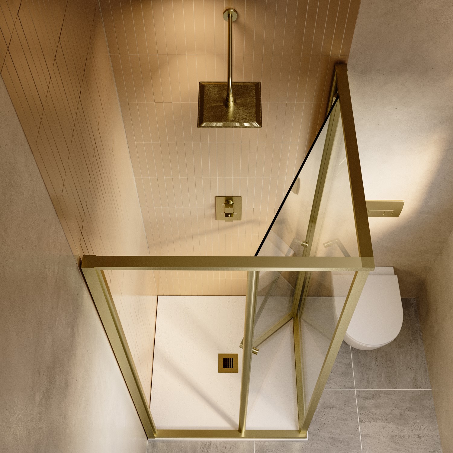 Constructed with a durable brushed brass aluminium frame and toughened safety glass, this enclosure is designed for long-term use. The Easy Clean coating reduces the buildup of soap scum and limescale, keeping your bathroom fresher with less effort. The door is reversible for left- or right-hand installation to suit your layout needs.