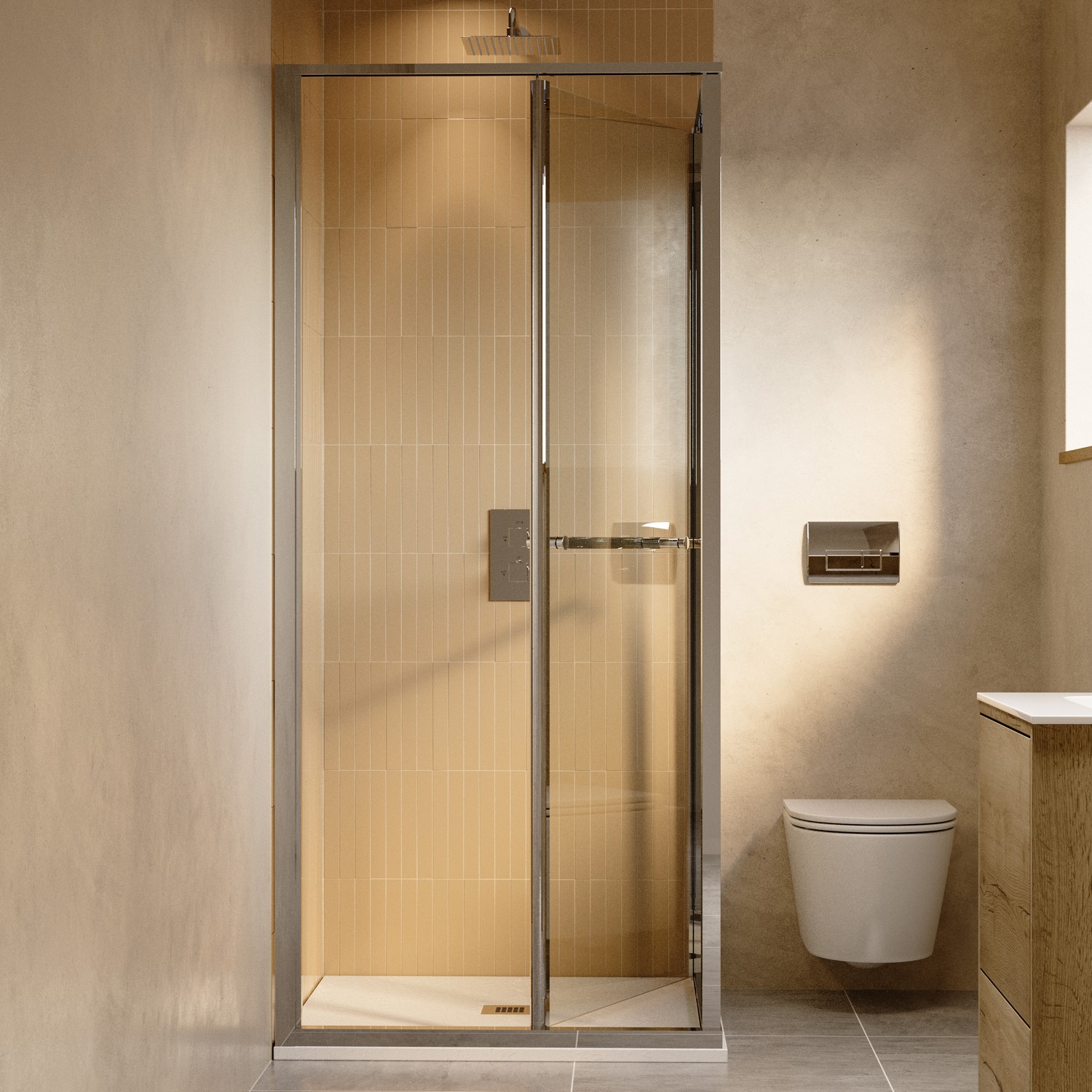 The Apollo In-Fold Shower Door combines the sleek look of a sliding door with the practicality of an inward-folding sliding mechanism — perfect for compact bathrooms where space is precious.