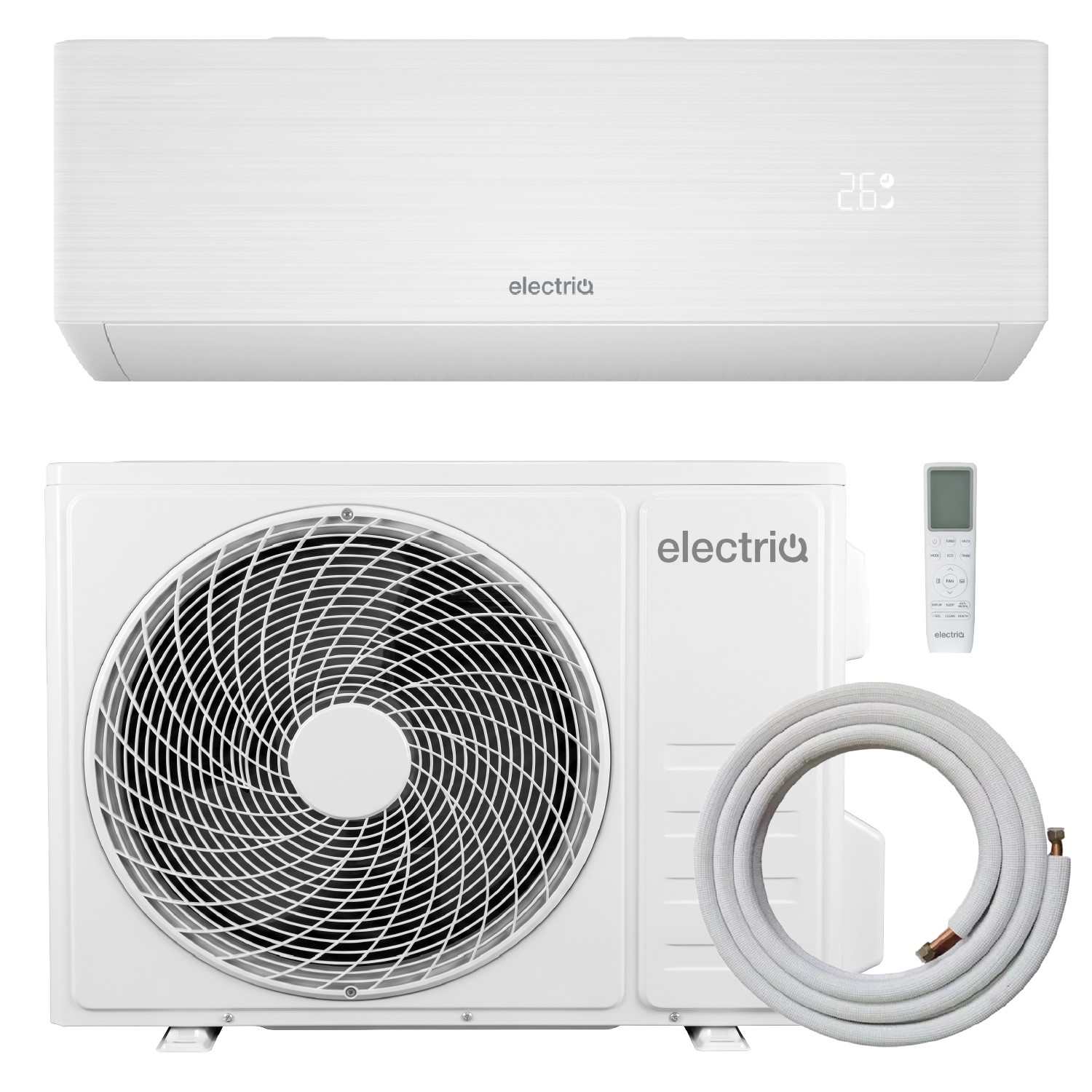 Our units are designed to reduce the installation time. The indoor and outdoor units are pre-gassed and sealed and they come with a pre-flared pipekit enabling the qualified fitter to install them easily. The indoor units should be fitted to the wall using the mounting plate supplied in the box. The condenser should be fixed on the ground or wall-mounted on the outside of the wall with the optional wall-mounting bracket. The unit is supplied with a 5-metre copper pipe that will reduce the need to purchase additional parts. It is also supplied with an electrical cable.
