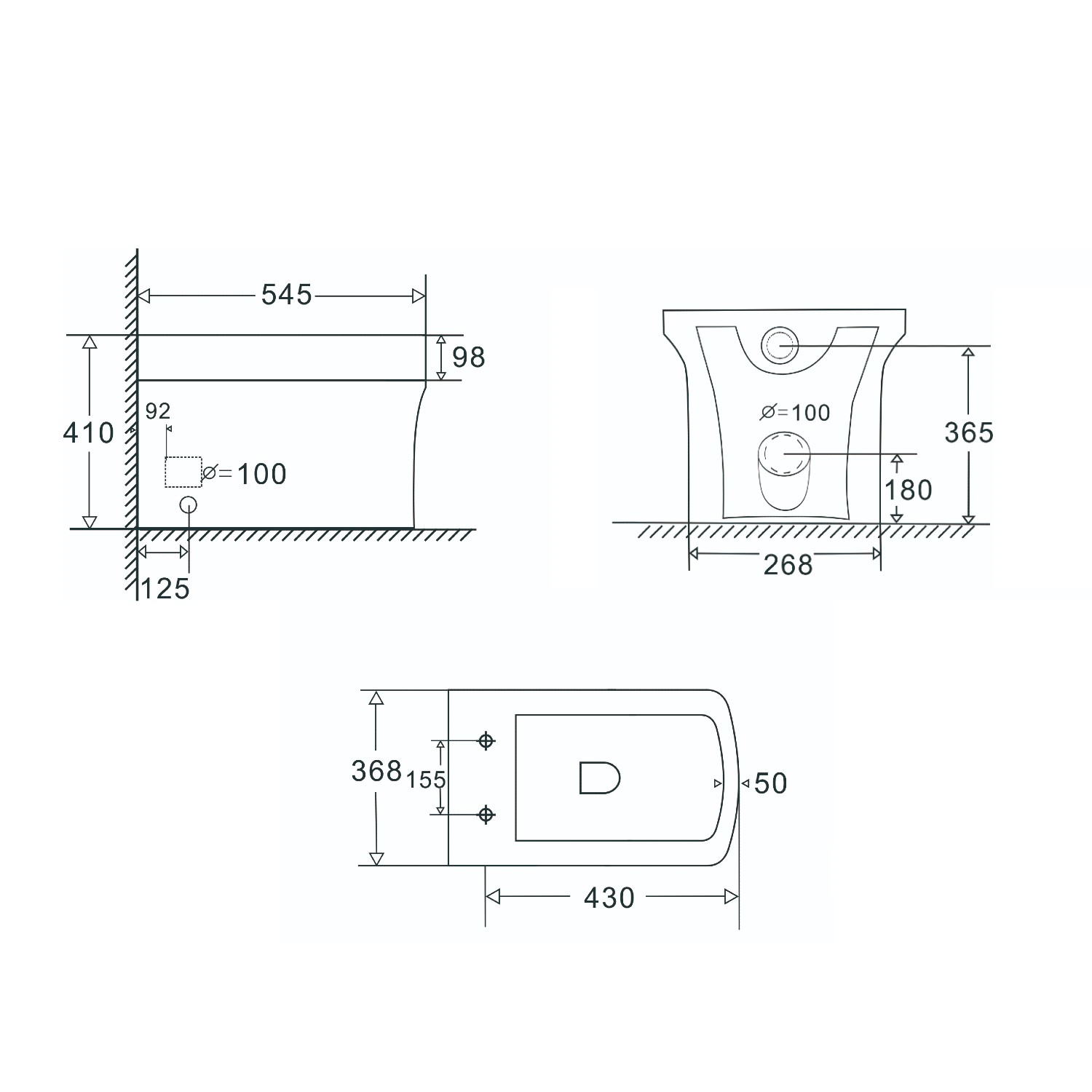 - Toilet Dimensions: H410 x W368 x D545 mm