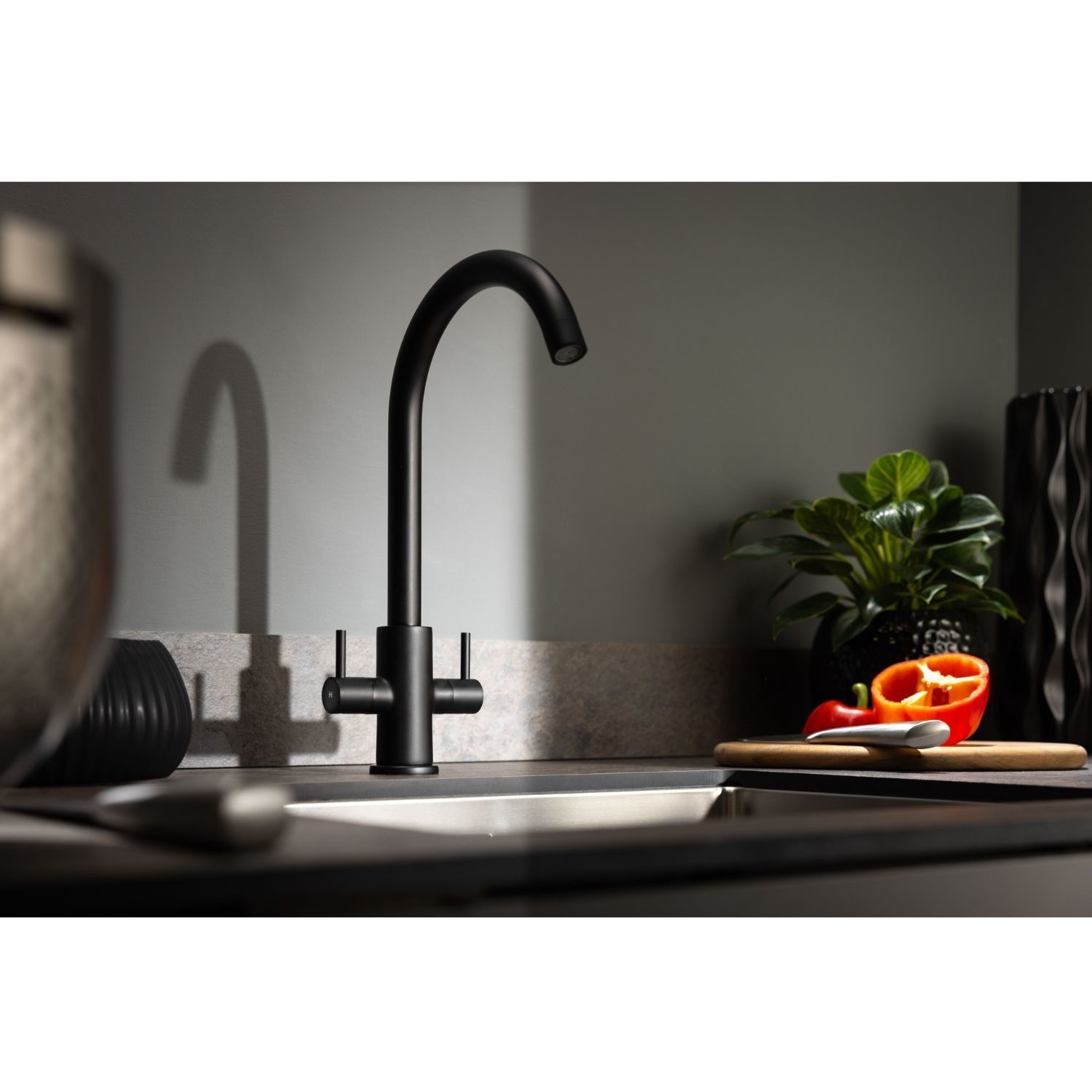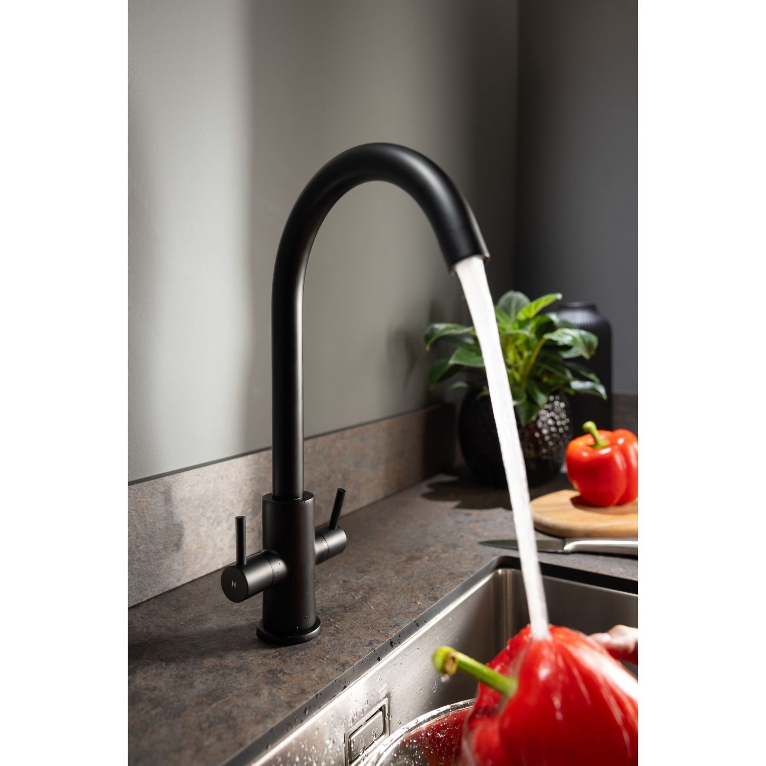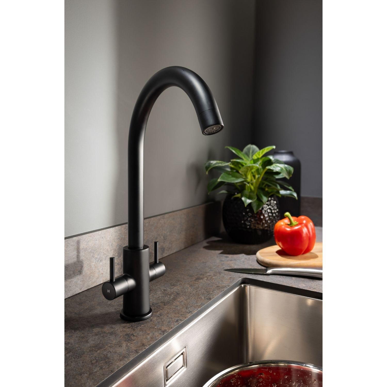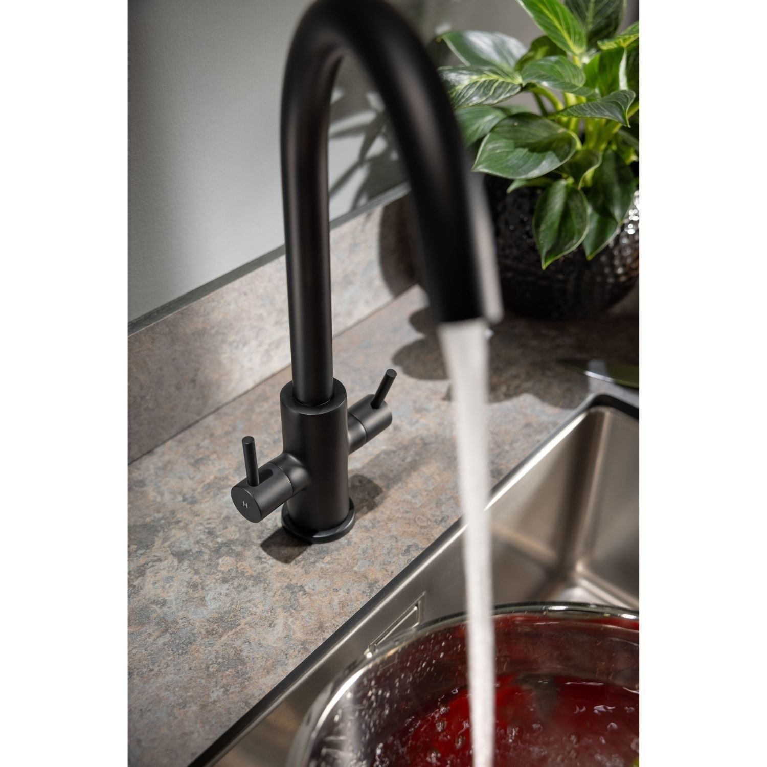 The Abode Marido Dual Lever Mixer Tap in Matt Black is a stylish and contemporary choice for modern kitchens. With a soft swan neck spout and minimalist dual lever controls, it’s perfectly suited to lower pressure systems and compact sink areas. Finished in a striking matt black paint, the tap offers a bold aesthetic that complements a wide range of kitchen designs. Built from solid brass and equipped with 1/4 turn ceramic disc valves, this deck-mounted tap also features a replaceable aerator for long-term performance and easy upkeep.