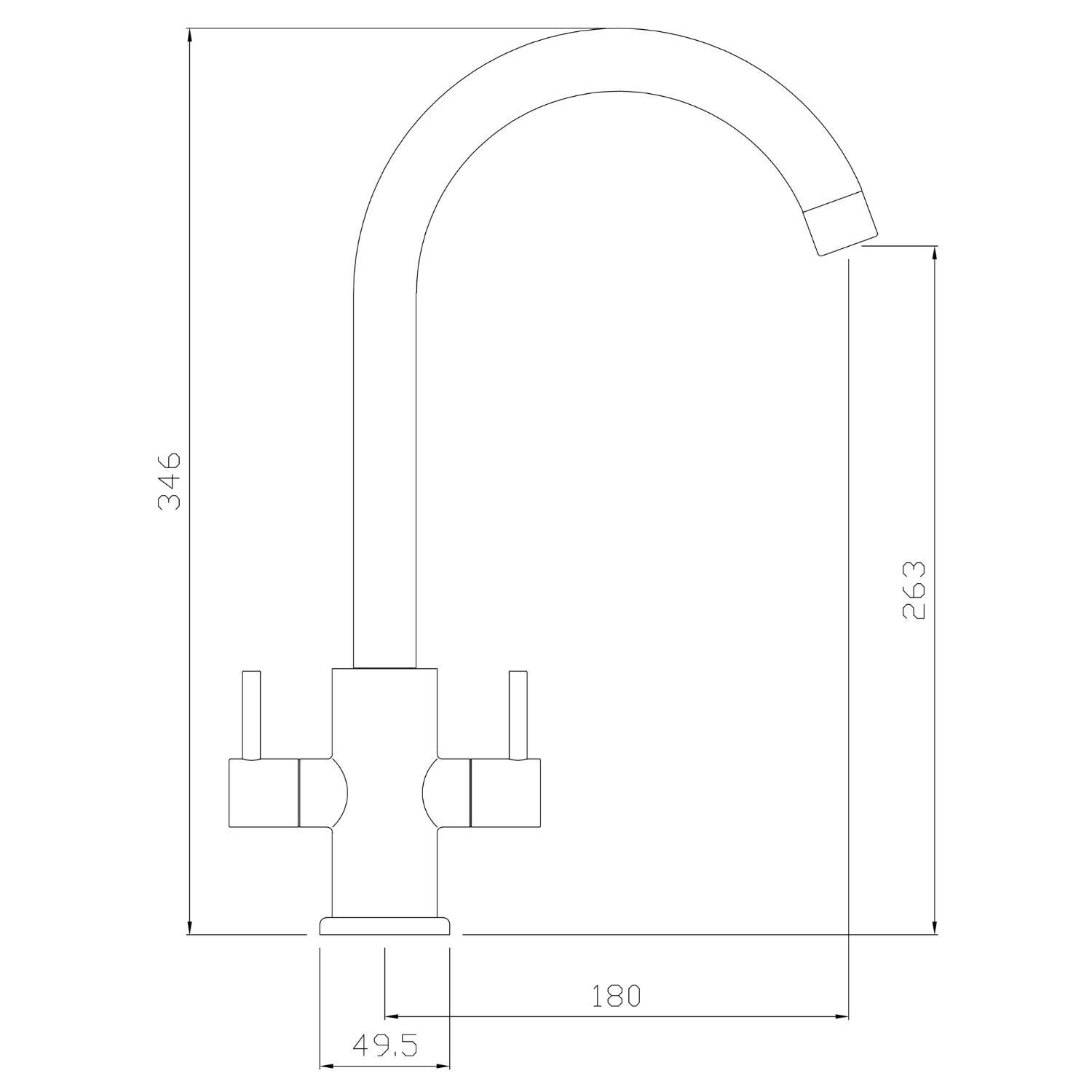 - Dimensions: H 34.6 x W 17.7 x D 5 cm – Spout projection: 17.7 cm