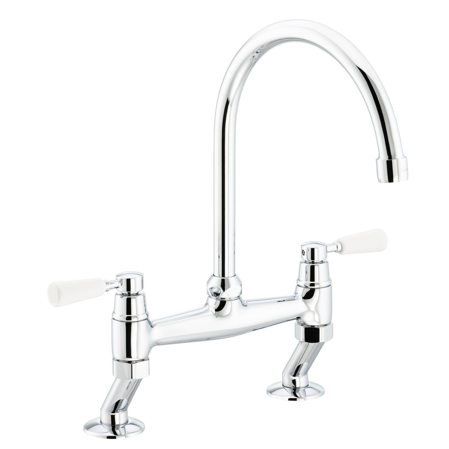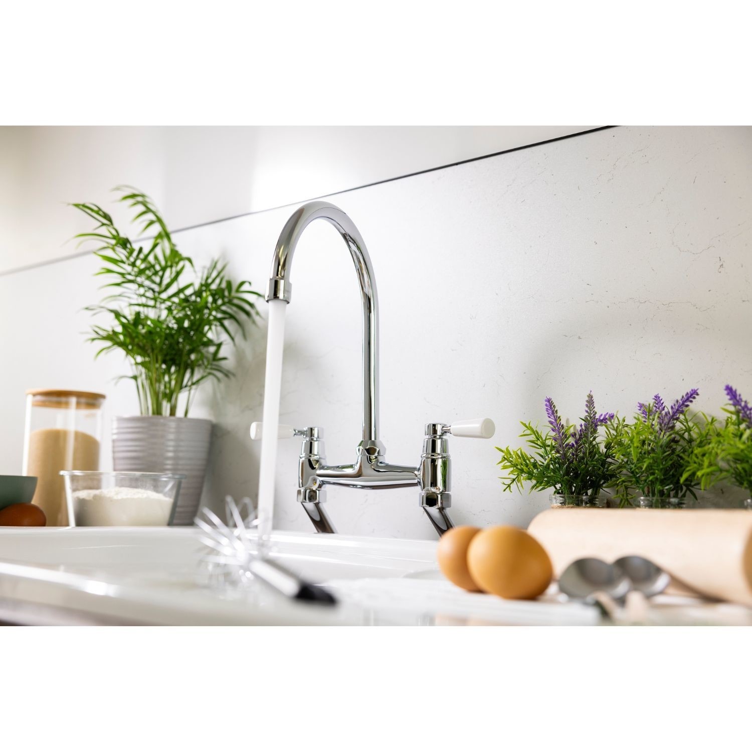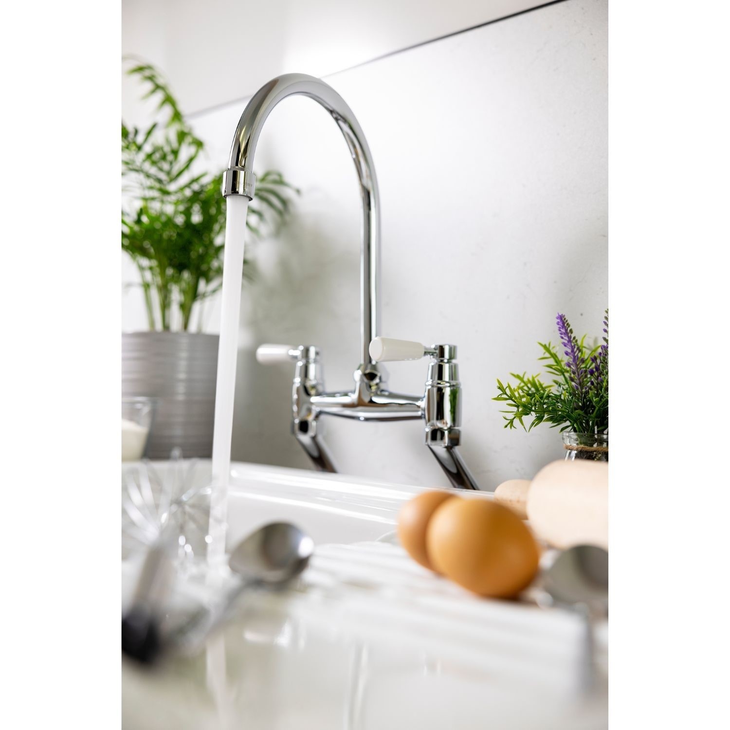 The Abode Traditional Bridge Dual Lever Mixer Tap in Chrome offers classic appeal with a timeless bridge design and elegant ceramic-style handles. Built with premium materials, it blends traditional aesthetics with modern engineering, delivering exceptional durability and effortless performance across all pressure systems.