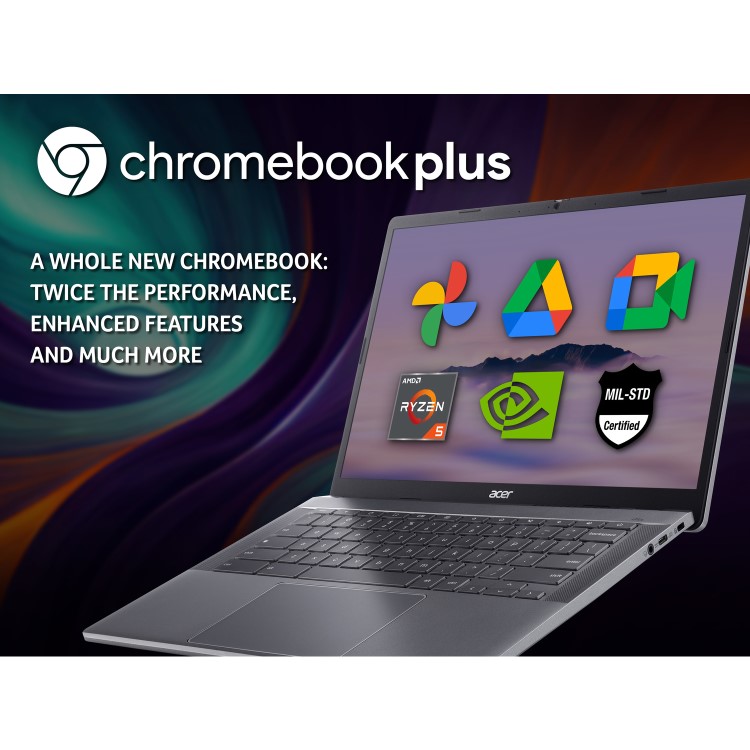 Worry less about your device and focus on your work. This high-performance Chromebook Plus has independently verified MIL-STD-810H military-grade durability.