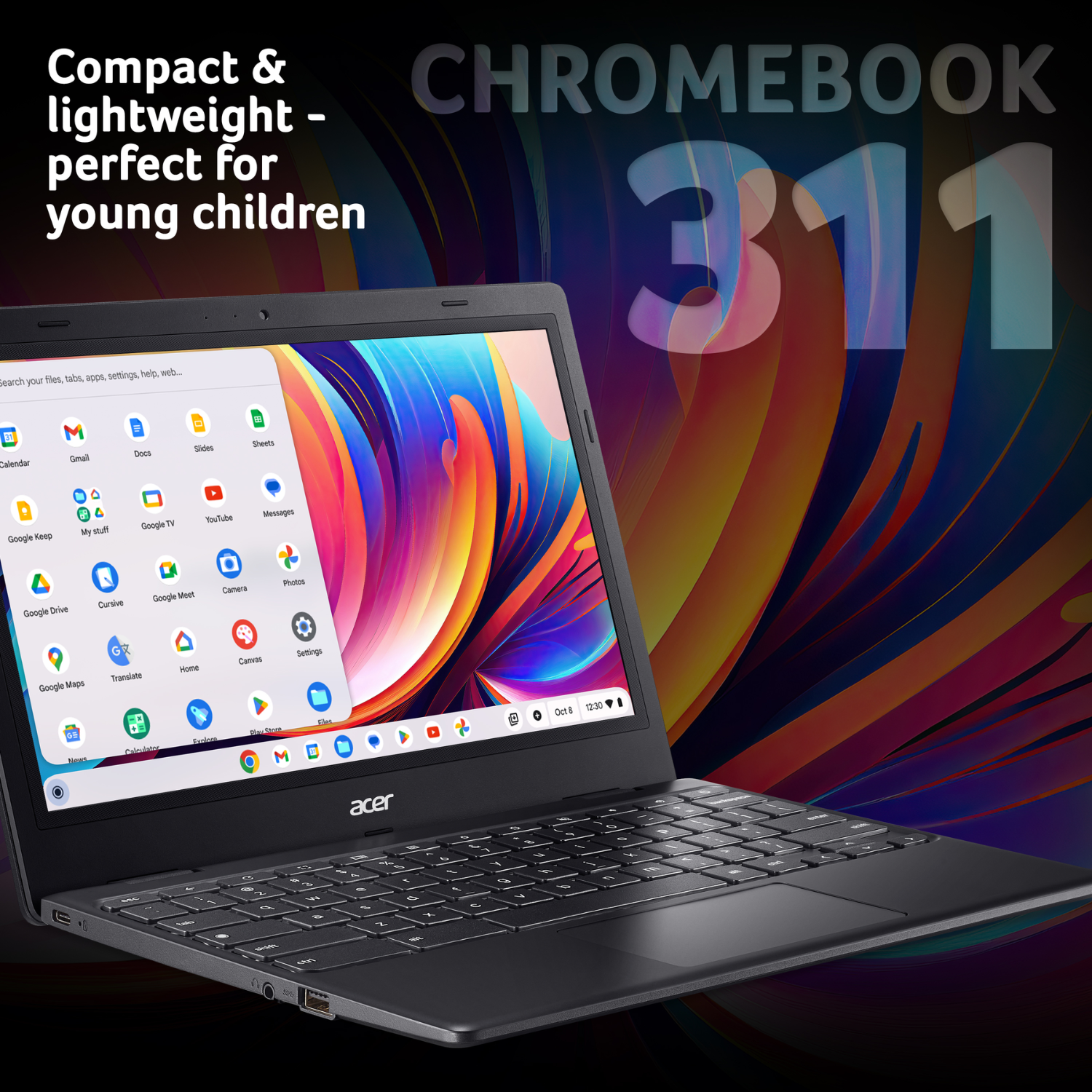 With its 29.5 cm (11.6") HD display, the Chromebook boasts sharp visuals and vibrant colors, making it perfect for everything from watching online content to reviewing documents. Its compact size and lightweight design ensure that you can easily carry it in your bag without feeling weighed down, making it ideal for students, professionals, and travelers alike.