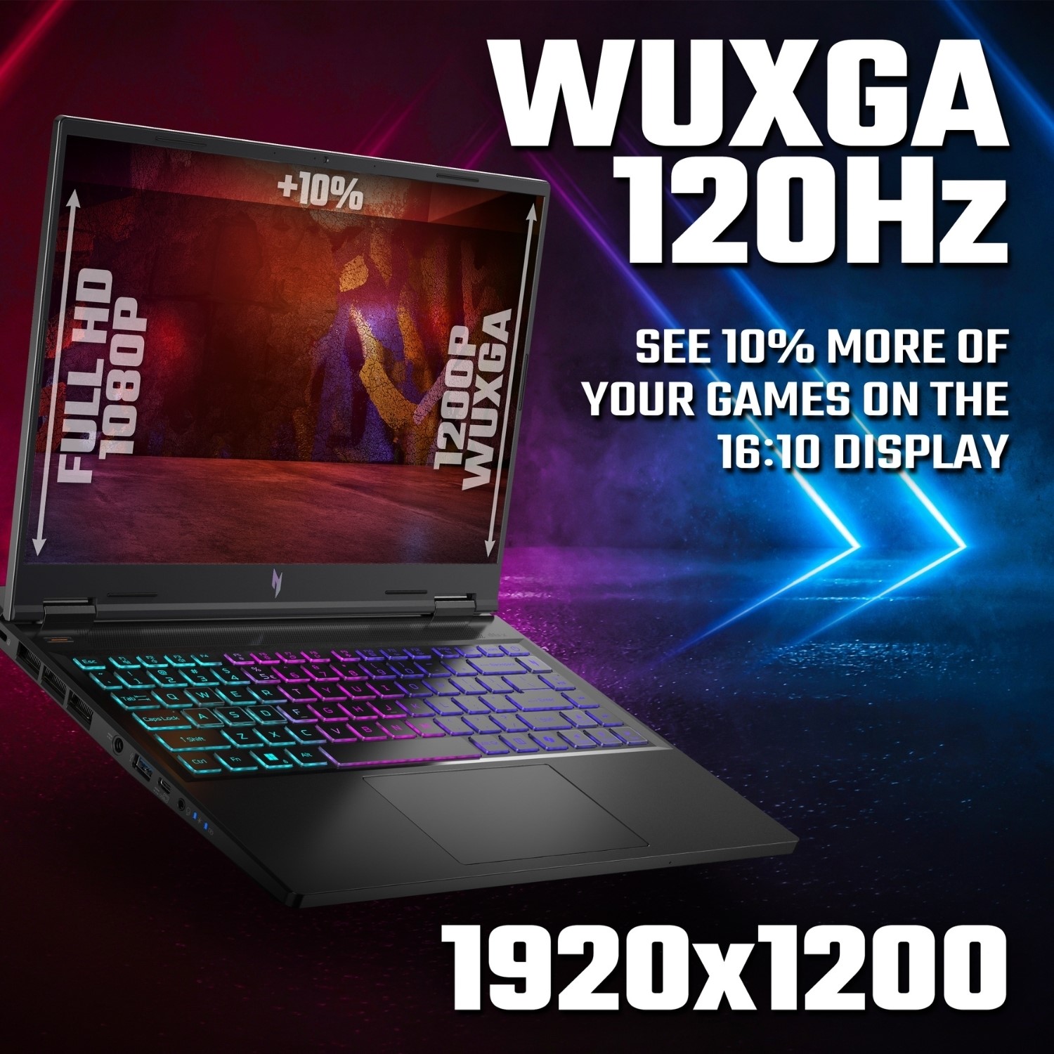 The 14.5-inch WUXGA display, boasting a 100% sRGB color gamut and 1920 x 1200 native resolution, offers vibrant visuals. With NVIDIA G-SYNC compatibility, a 120 Hz V-Sync rate, and dynamic display switching, enjoy seamless, vivid gameplay without tearing.
