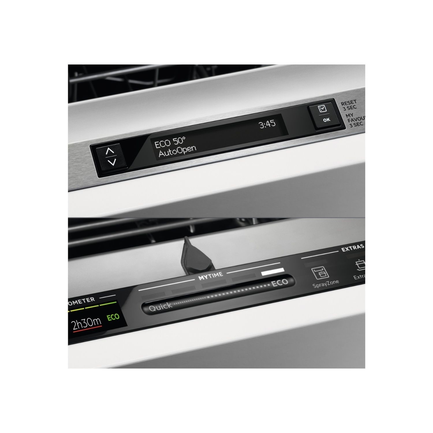 Enjoy perfectly dry dishes with AEG's AirDry feature. It automatically opens the dishwasher door by 10cm at the end of the cycle. This uses natural air to finish drying, giving you spotless results and saving energy. No more damp dishes or extra drying by hand.