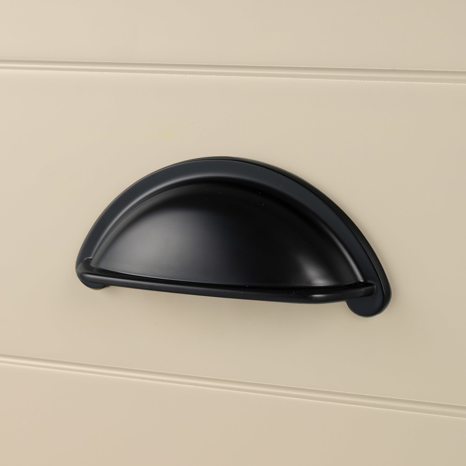 - 2 drawers with soft closing hinges & black cup pull handles
