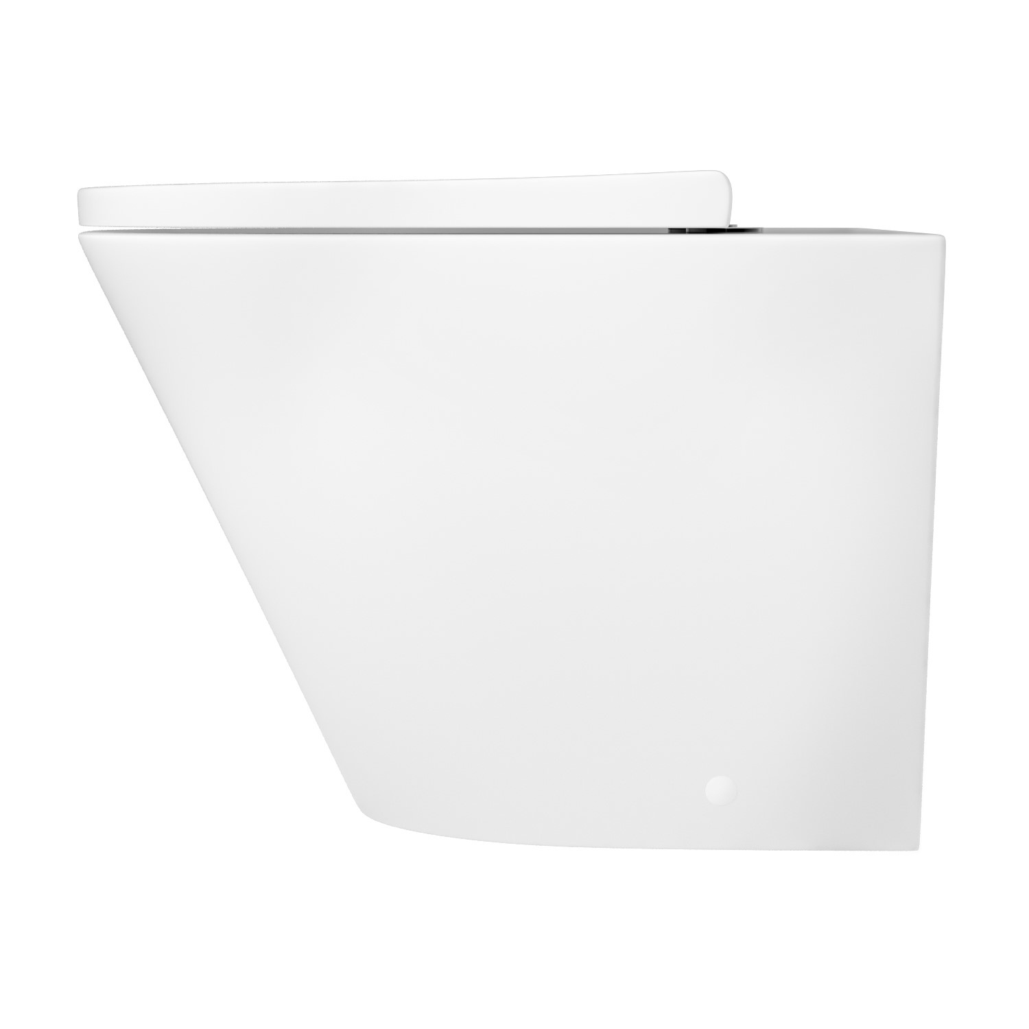 It comes complete with a soft close wrap over seat, so no noise and is safer (no fingers will be trapped), and features a quick-release mechanism for easy use and cleaning. The pan is also flush to the wall with a closed back so it's easier to clean, prevents dust and hides any pipework.