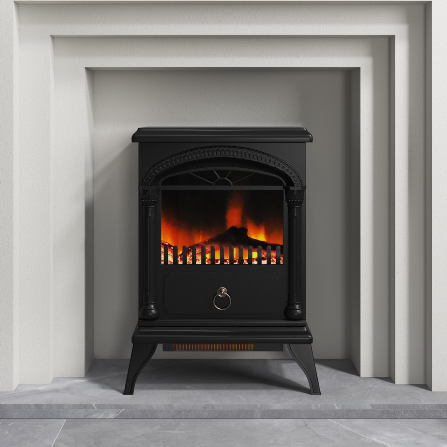 This stove has a traditional style that’s perfect for adding a homely touch to your room. The log effect fuel bed alongside the realistic flickering flame effect creates a beautiful ambiance, with a warm amber glow that’s perfect for snuggling up in front of. You can also enjoy the glow of the flames without the heat, great for when you just want to set the mood.