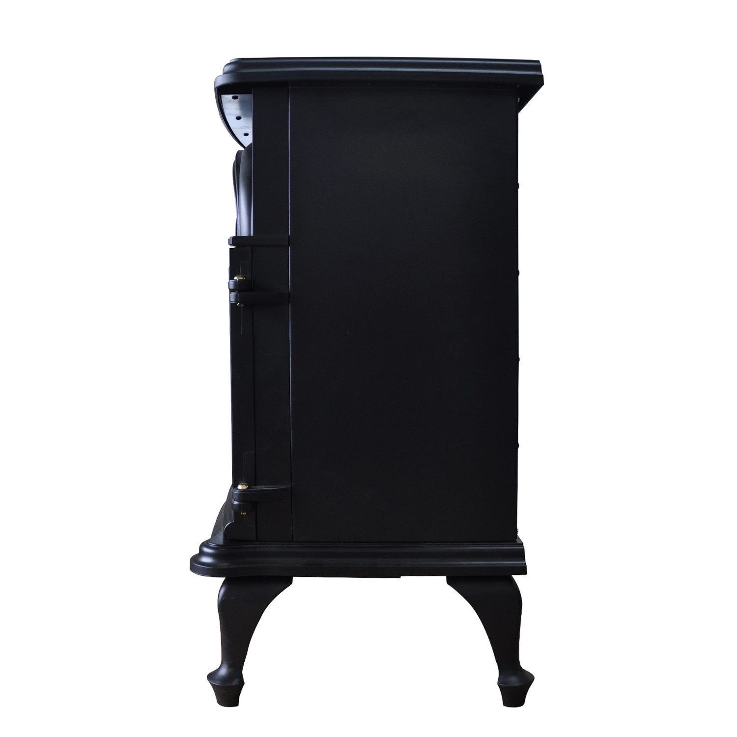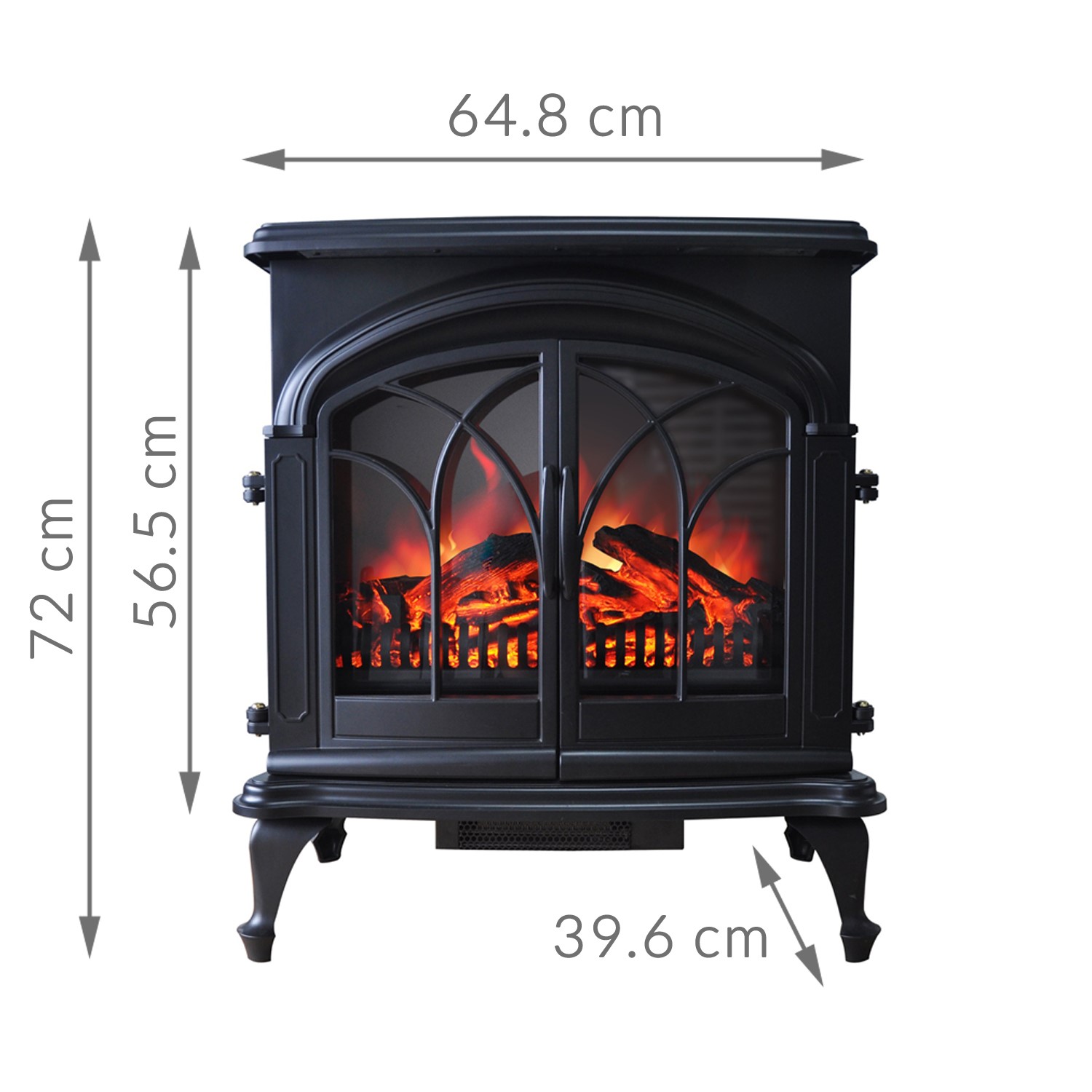 This stove has been beautifully styled with working double doors, with cut out detailing and a matt black finish. With a log effect fuel bed, realistic flickering flames and an amber glow it brings a warm ambiance to your room for cosy nights in. The flames can even be enjoyed without the heat, if you're just after the ambiance.