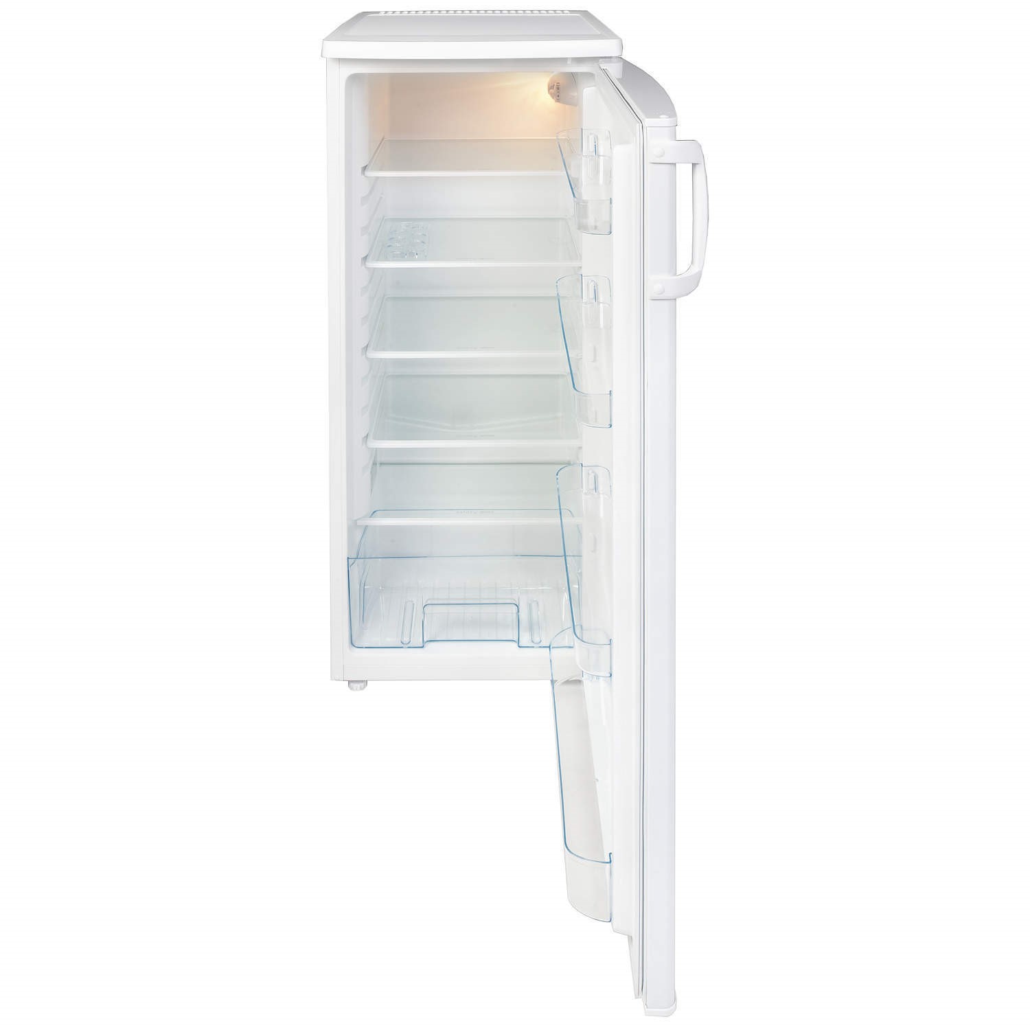 The Amica FC206.3 fridge has a total usable capacity of 186 litres, this gives you plenty of space to keep your fresh goods. Within the fridge there are 5 adjustable shelves and 1 large salad drawer; this fridge gives you lots of space to spread your weekly shop. These shelves are adjustable, therefore you can easily accommodate to any taller items by altering the shelves position or removing them from the fridge completely