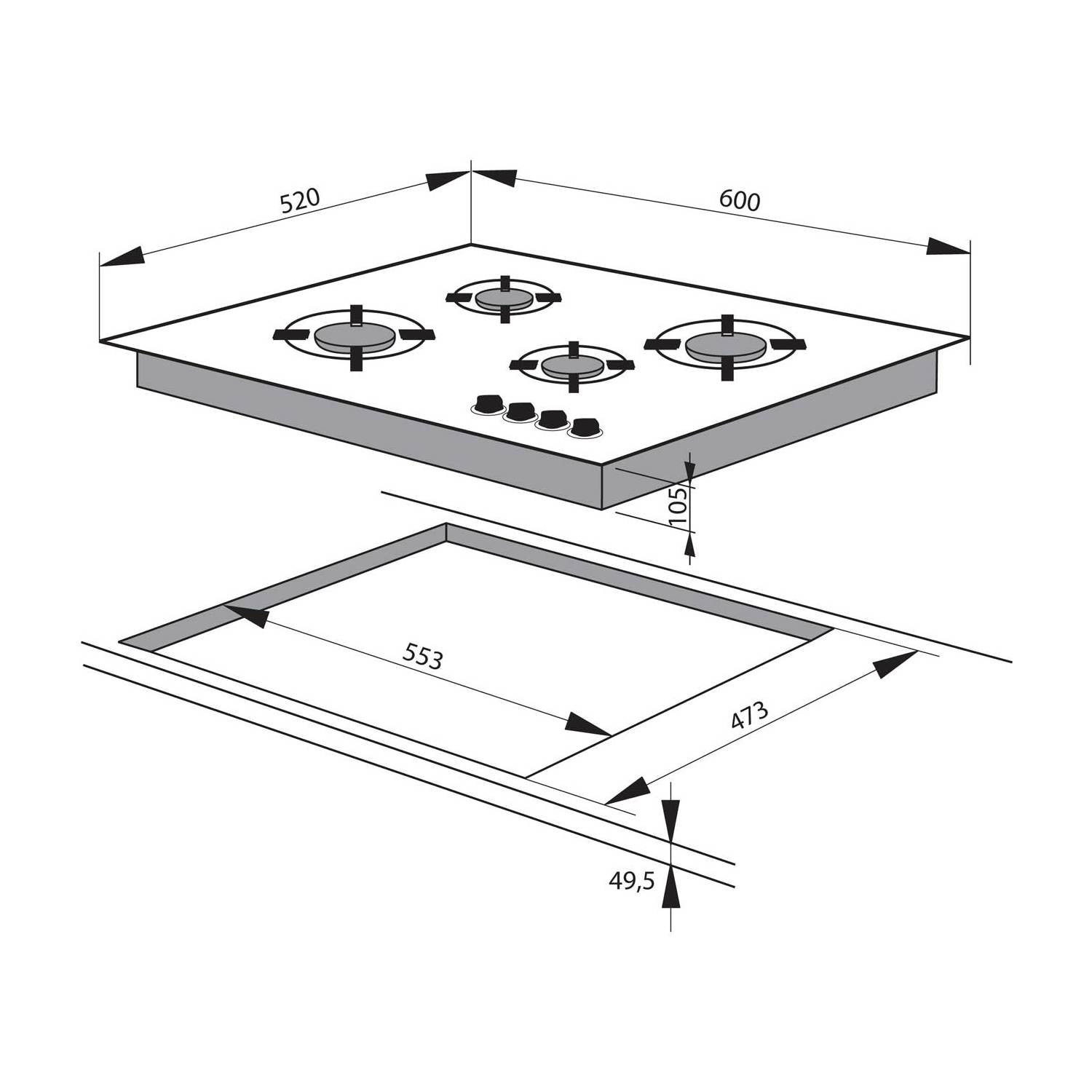 - Cut out dimensions: H49.5 x W55.3 x D47.3 cm