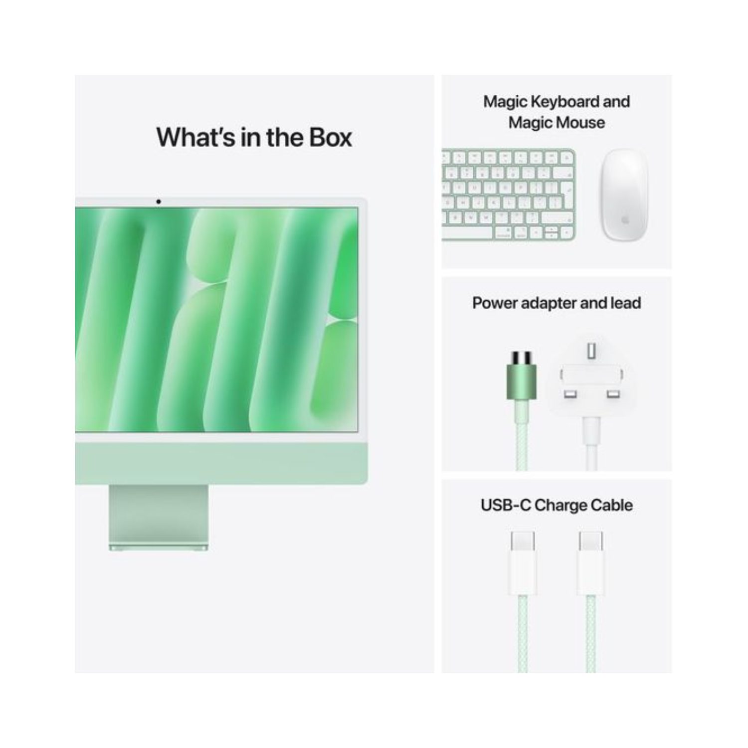 The iMac in Green adds a touch of personality and sophistication to any space. Its ultra-slim design makes it a beautiful addition to any workspace, with a compact form factor that takes up minimal space on your desk. The green color is fresh and vibrant, making this iMac not only a powerhouse of performance but also a stunning piece of decor.