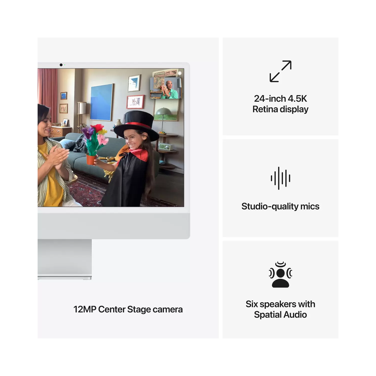 The 24-inch 4.5K Retina display features 500 nits of brightness and supports up to one billion colours.