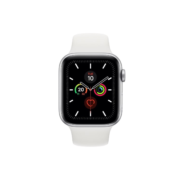 Apple Watch Series 5 GPS + Cellular 44mm Silver Aluminium Case with White Sport Band