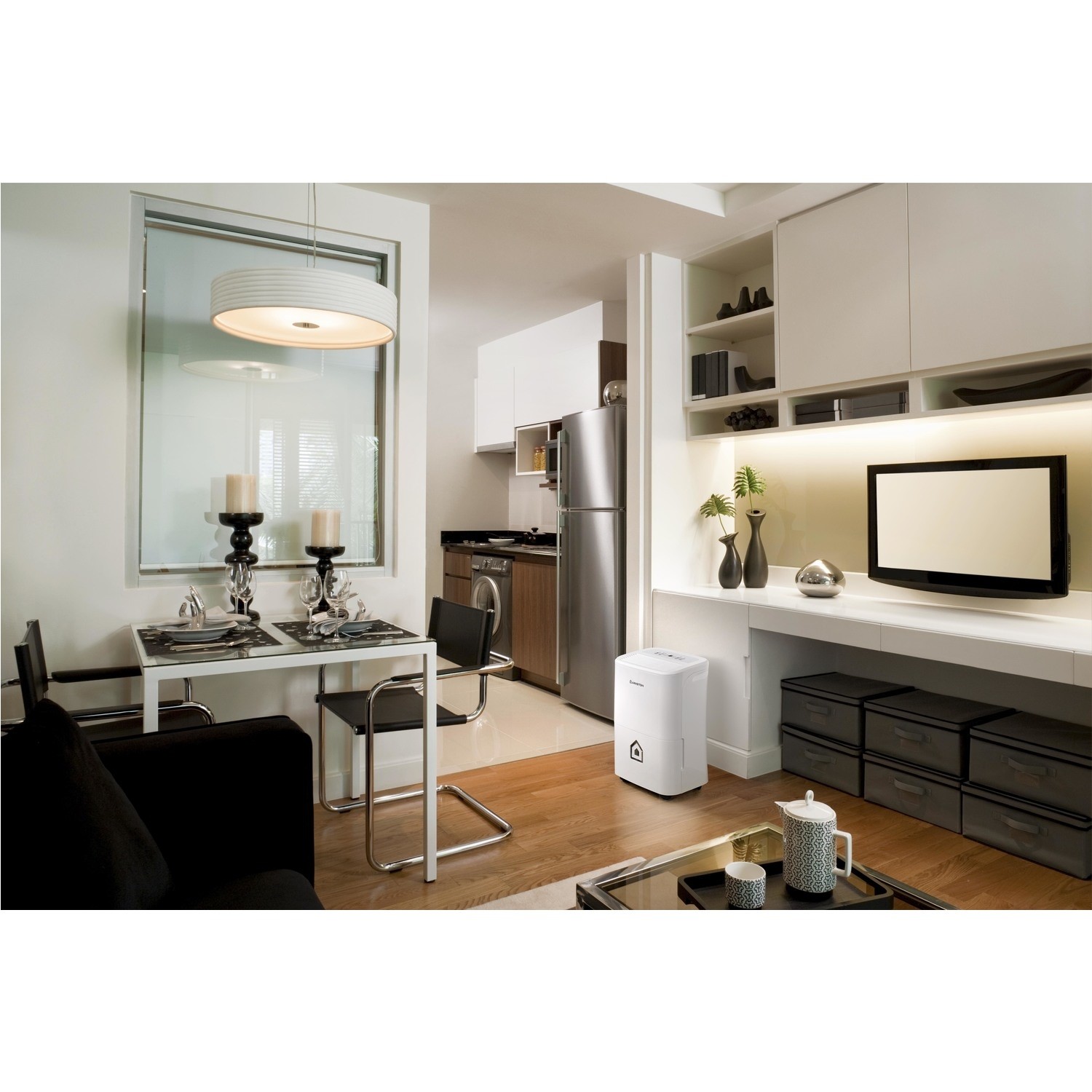 - Easily move this compact and lightweight dehumidifier around your home with its built in castors