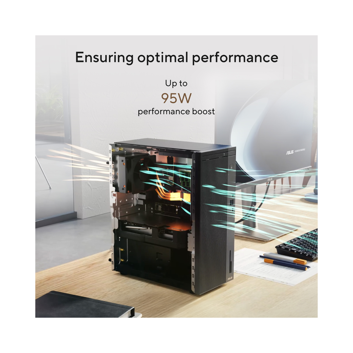 The ASUS V500 Mini Tower features a space-saving yet expandable design that fits neatly into modern workspaces. Its compact footprint delivers desktop-grade performance without taking up unnecessary desk space.