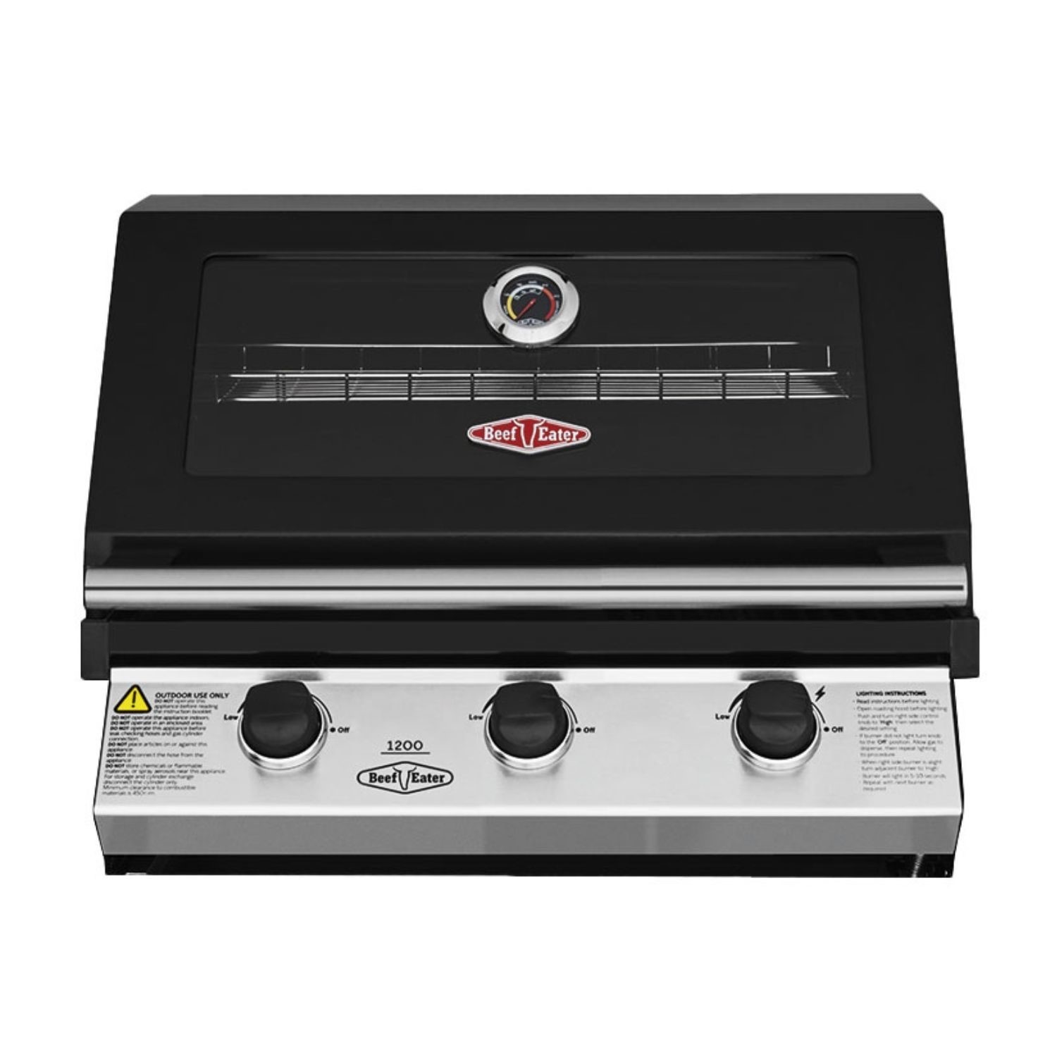 This BBQ features a durable black enamel roasting hood with an integrated temperature gauge and viewing window, allowing you to monitor your cooking with ease. It offers reliable ignition through a quartz start system, while powerful cast iron rail burners and versatile cast iron cook tops with grill and griddle options ensure excellent performance. Designed for convenience, it includes an easy-to-use drip tray for simple maintenance, a seam-welded burner box to enhance durability and prevent grease leaks, and a large warming rack to maximise cooking space. The rollback hood design allows the BBQ to sit neatly against a wall, and it is backed by a 5-year warranty for added peace of mind.