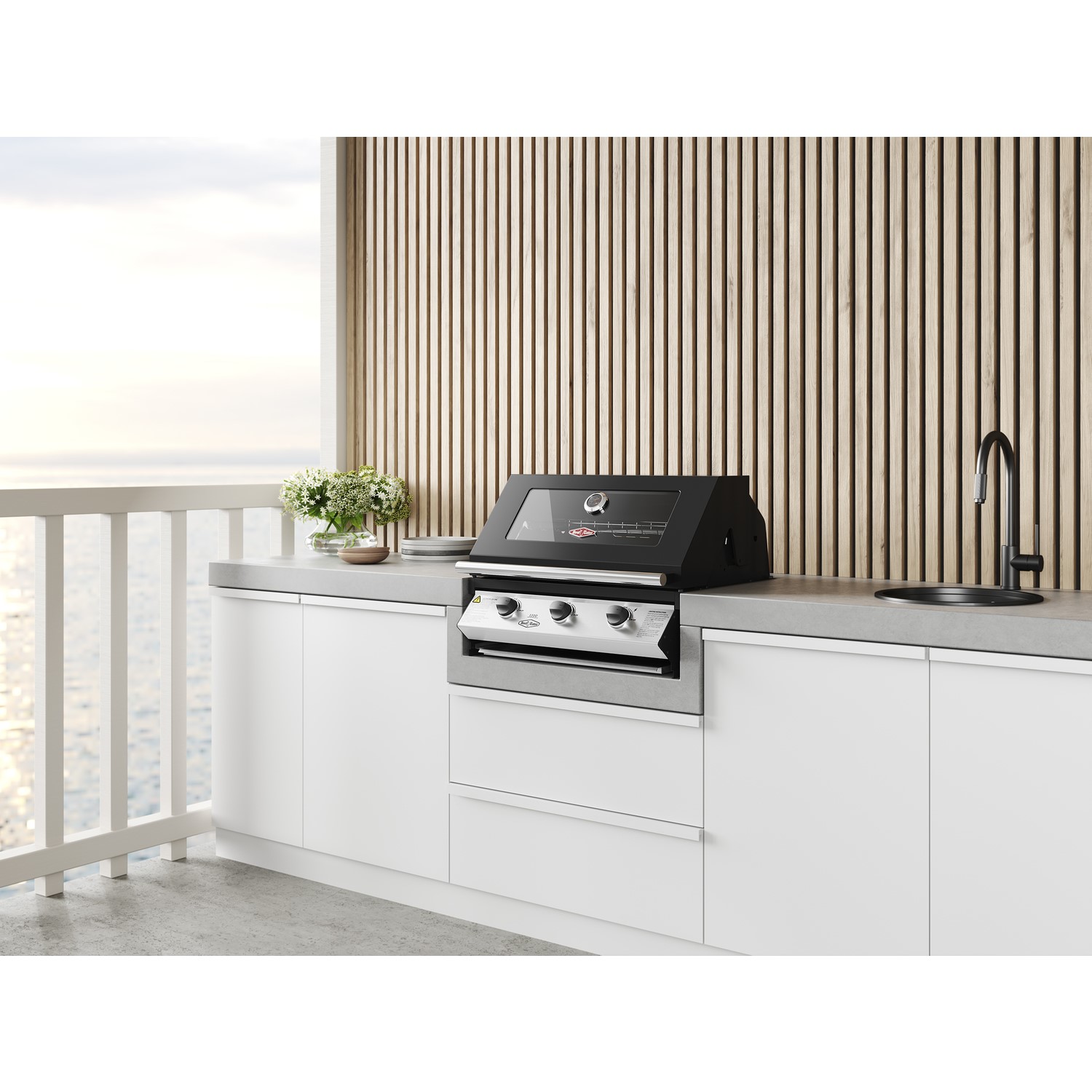 • A rollback hood that allows the BBQ to sit snugly against the wall