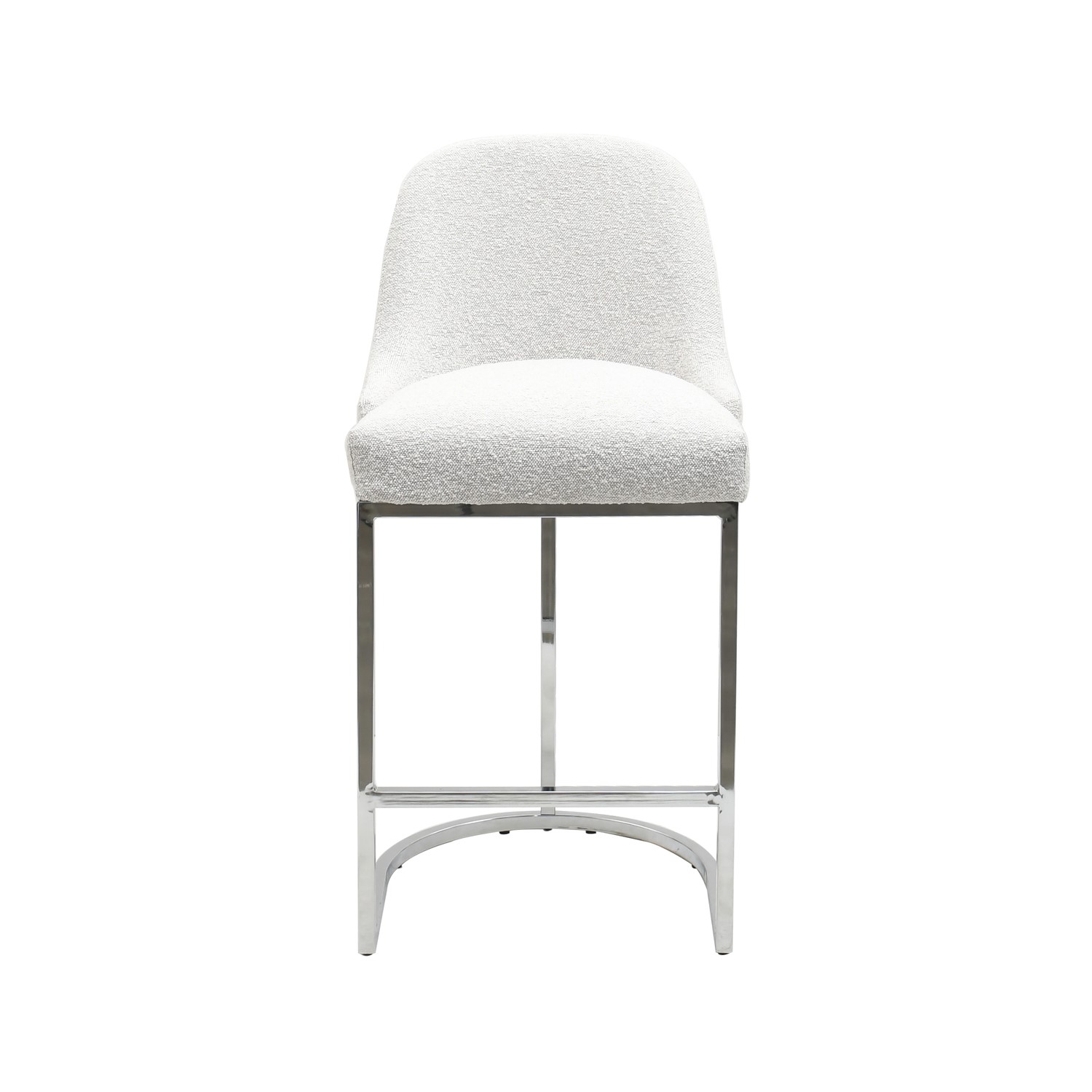 Add the perfect on-trend finishing touch to any kitchen with the Callie stool. The stylish cream & beige two tone boucle upholstery contrasts beautifully with the a chrome finished leg. Complete with a built-in footrest, it’s ideal for sitting while you eat, drink or work.
