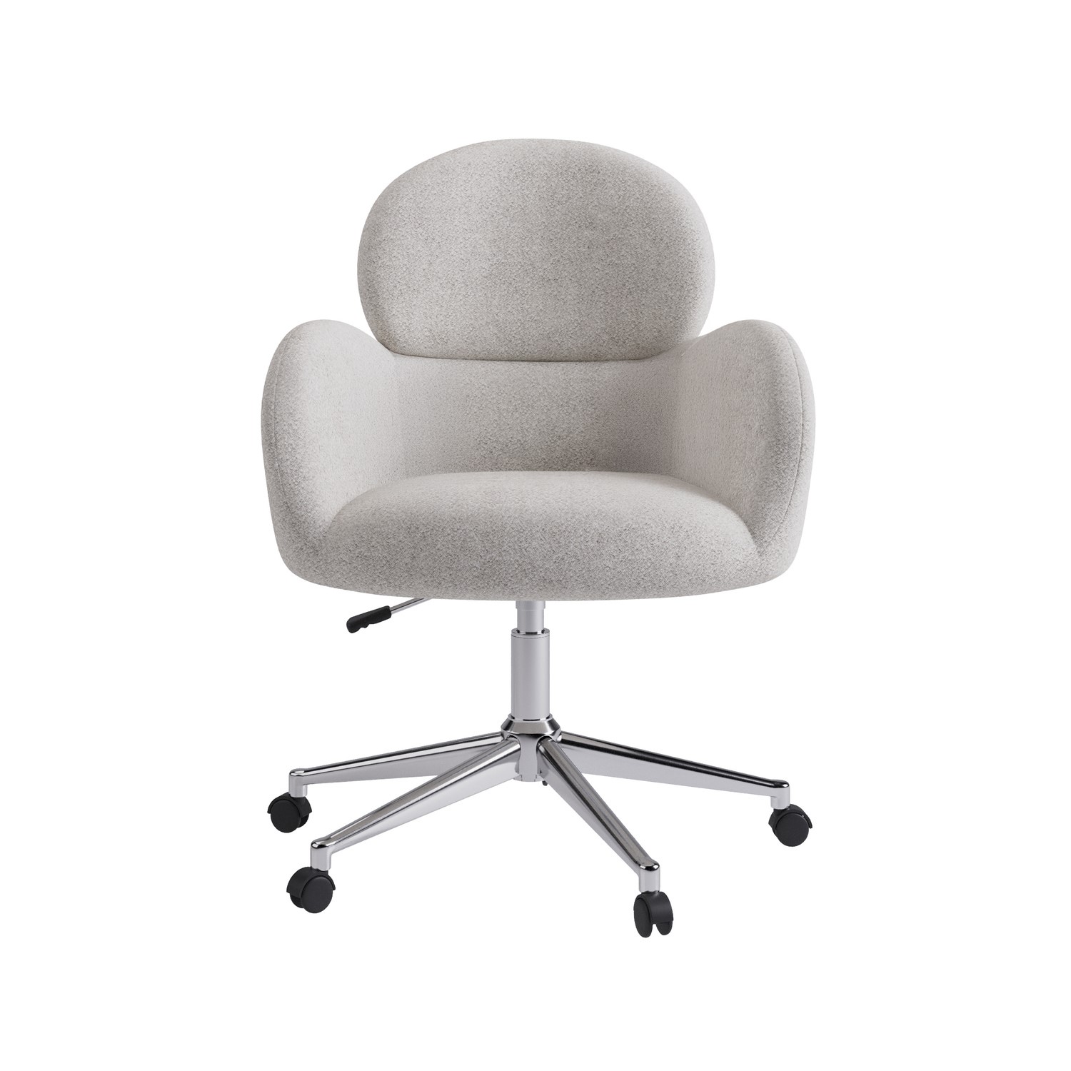 The Joelle Swivel Office Chair is the perfect blend of ergonomic support and contemporary design. Upholstered in a soft and durable boucle fabric, this modern desk chair offers unmatched comfort and style, whether you're working at a computer, studying, or elevating your home office décor. With a gas lift mechanism that enables height adjustment, castor wheels for easy manoeuvrability, and a complete 360° rotation, it has been built with comfort and convenience in mind.