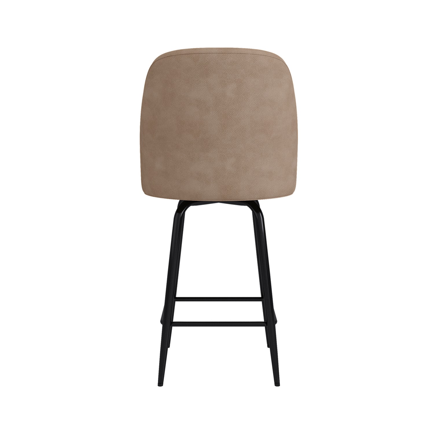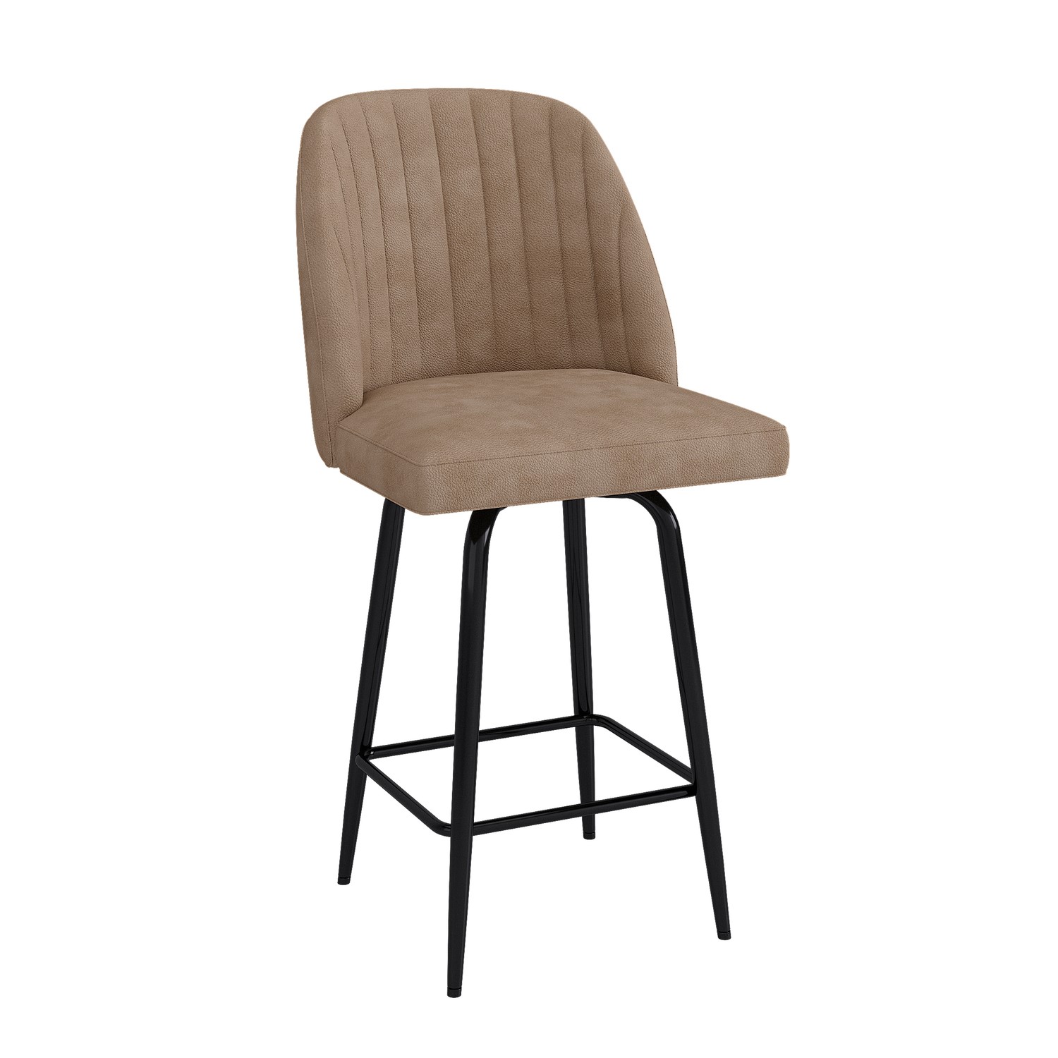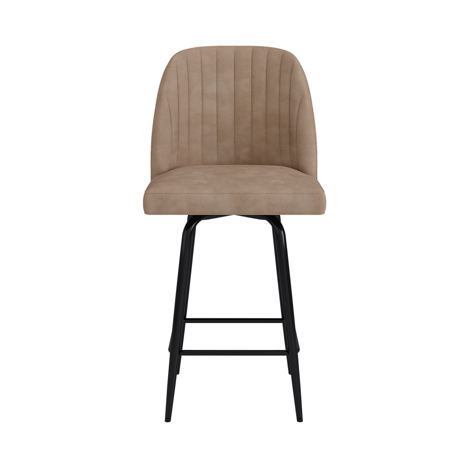 The Logan kitchen stool combines space-saving practicality with modern design. Perfect for smaller kitchens, the swivel seat makes it easy to slide in and out, while the tall, slightly curved backrest supports your posture during everyday use. Finished in beige faux leather with subtle vertical stitching, it’s both stylish and versatile. Black metal legs offer a sleek contrast and durable foundation, making this stool a smart and lasting addition to your kitchen. Complete your space with matching items from the Logan range.