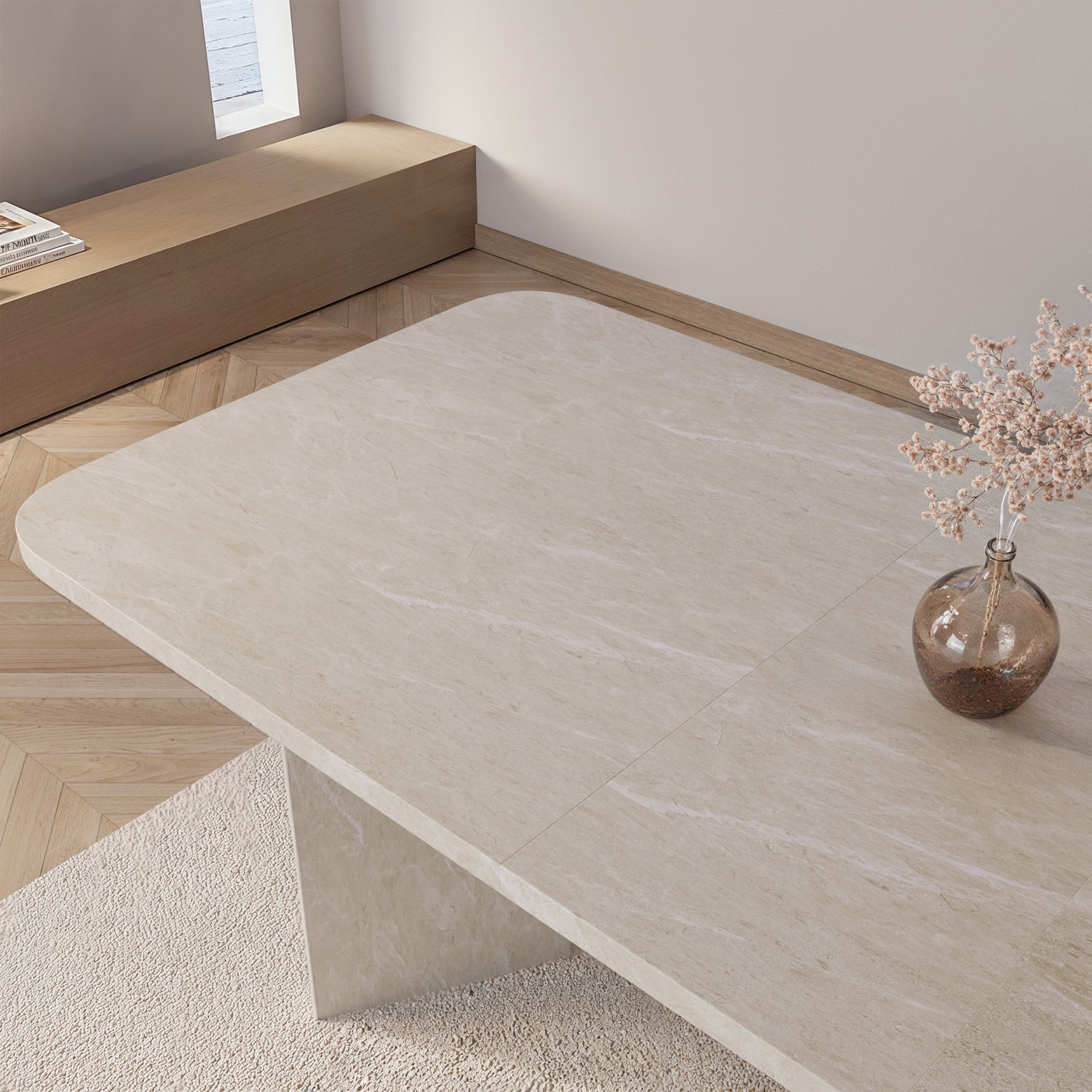 Neutral Aesthetic: With its soft beige finish, this dining table blends seamlessly into various interior styles, from modern and minimalist to classic and contemporary. Its warm, natural tone ensures effortless coordination, making it a versatile addition to any home.