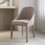 Upholstered in beige textured fabric with grey wash oak legs, the Etta dining chair is a perfect neutral addition to any dining space. Its foam-filled seat and curved backrest provide ultimate comfort, while the solid oak frame ensures high quality and durability. A modern take on classic farmhouse decor, this timeless piece comes fully assembled. For a cohesive look, pair it with the matching kitchen stool.