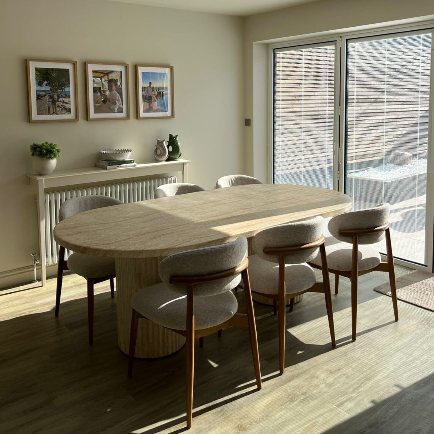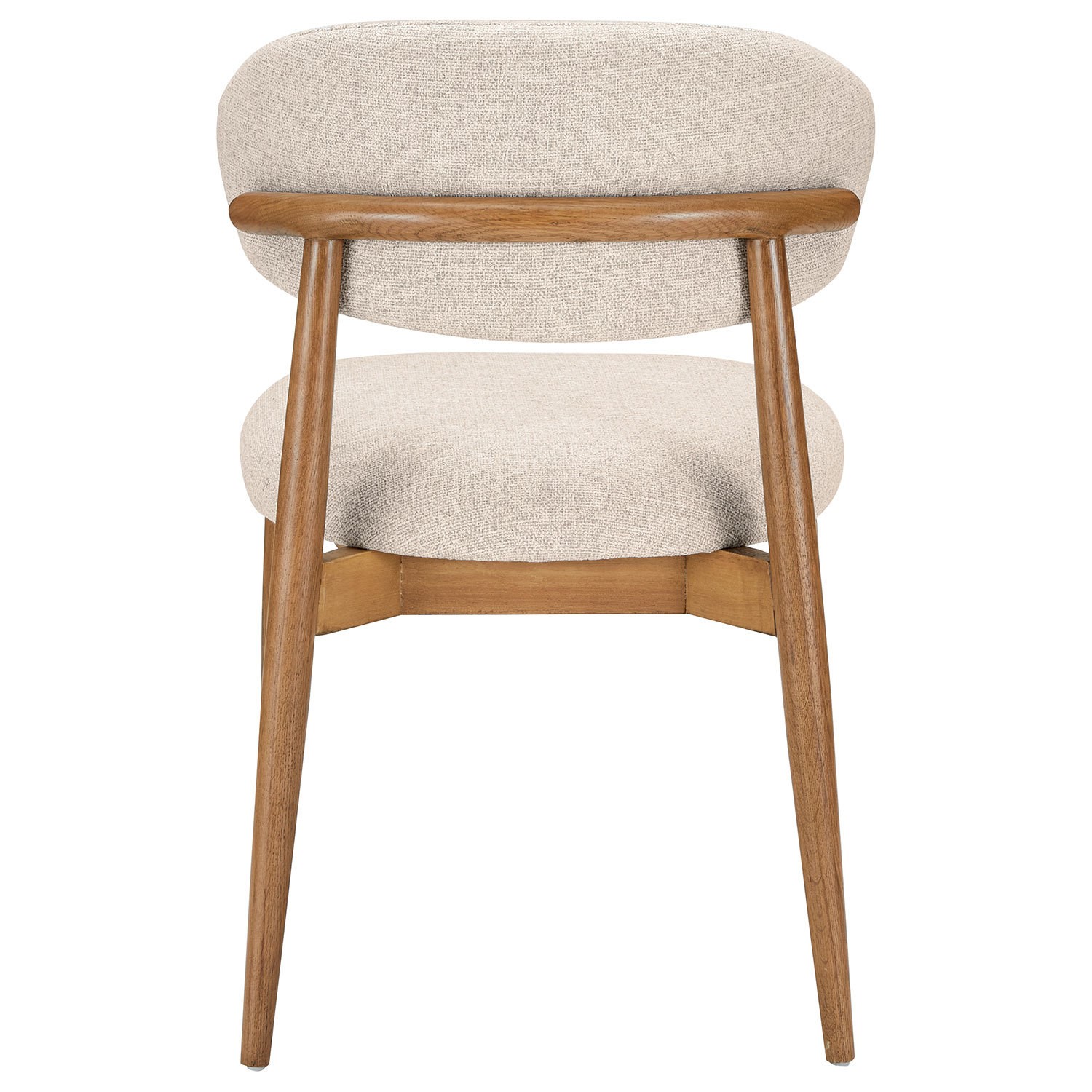 Introduce a timeless elegance to your dining area with the Kori Beige Upholstered Curved Dining Chair. Its solid rustic ash wood exposed backrest showcases natural beauty, while the curved open back design offers both style and support. Upholstered in textured beige fabric, this chair exudes a classic yet contemporary vibe, perfect for any modern or retro-inspired space. Whether paired with a dining table or as an accent piece, the Kori chair delivers comfort, functionality, and undeniable charm.