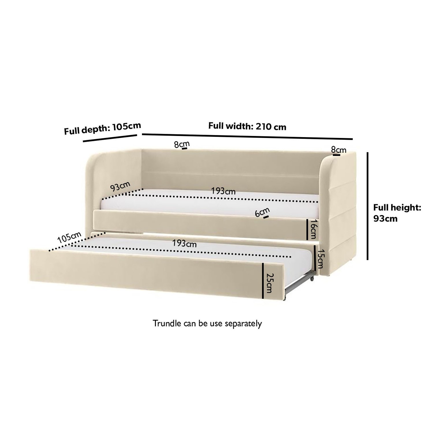 - Trundle dimensions: W193 x D105 x H25 cm