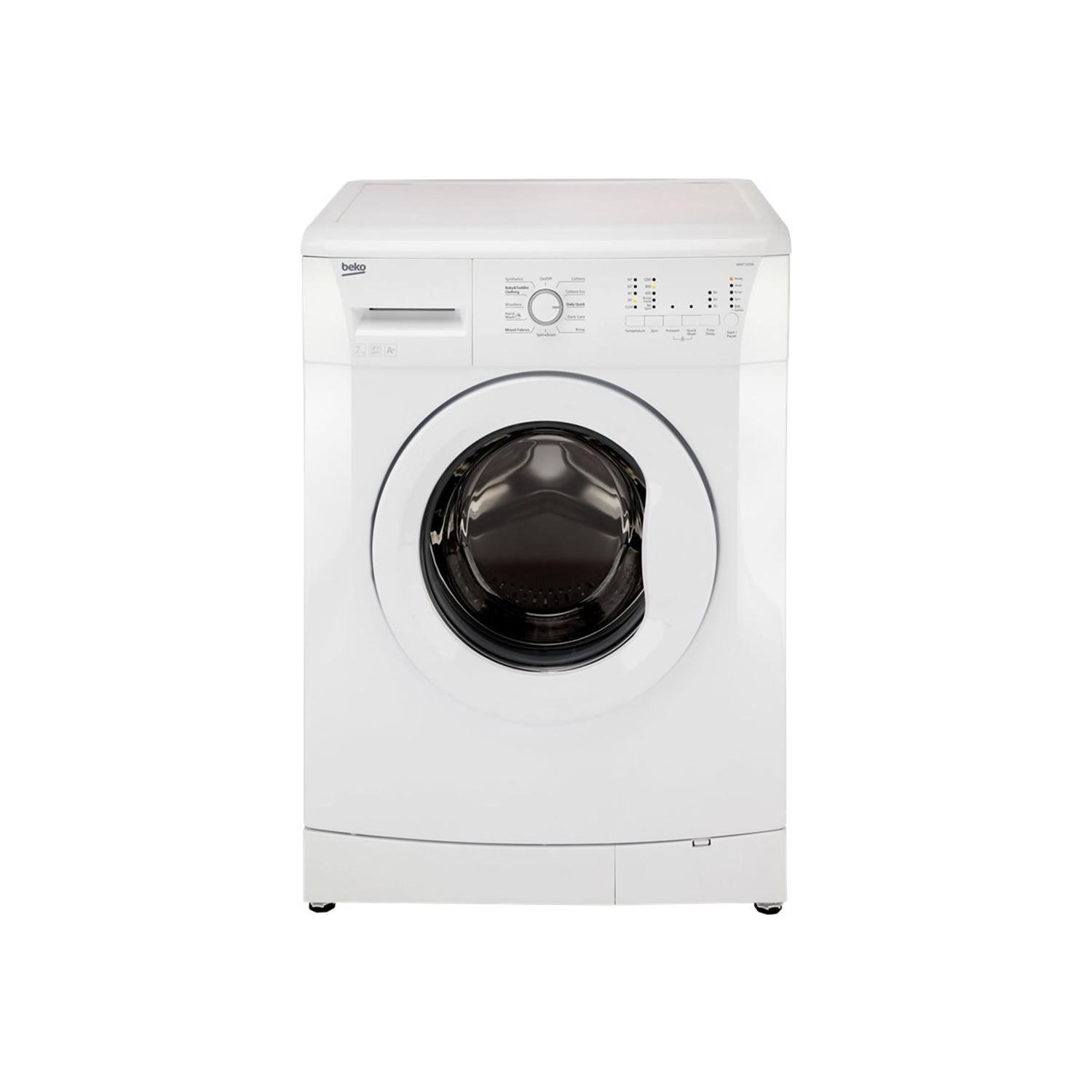 The Beko WM7120W is a freestanding washing machine with a 7 kg load capacity and 1200 rpm spin speed.