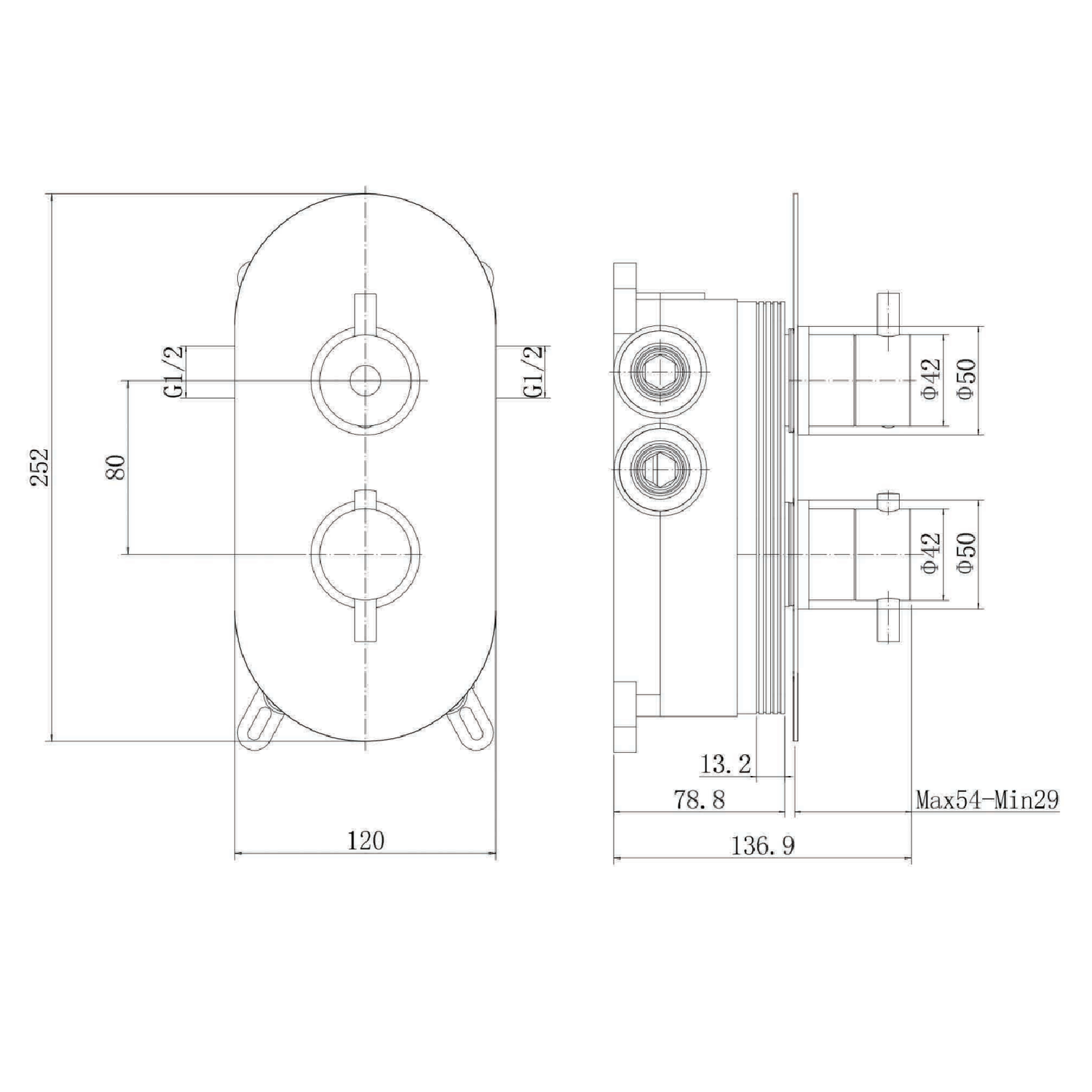 - Overall Dimensions: H252mm x W120mm x D136.9mm