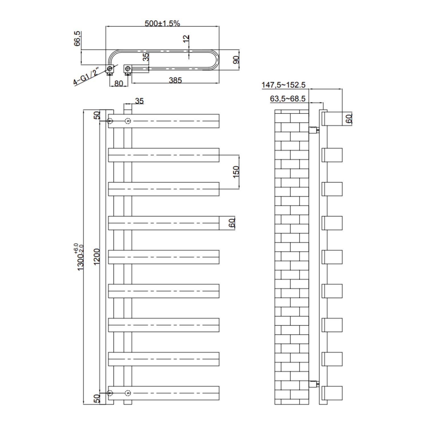 - Radiator Dimensions: H1300 x W500 x D90mm