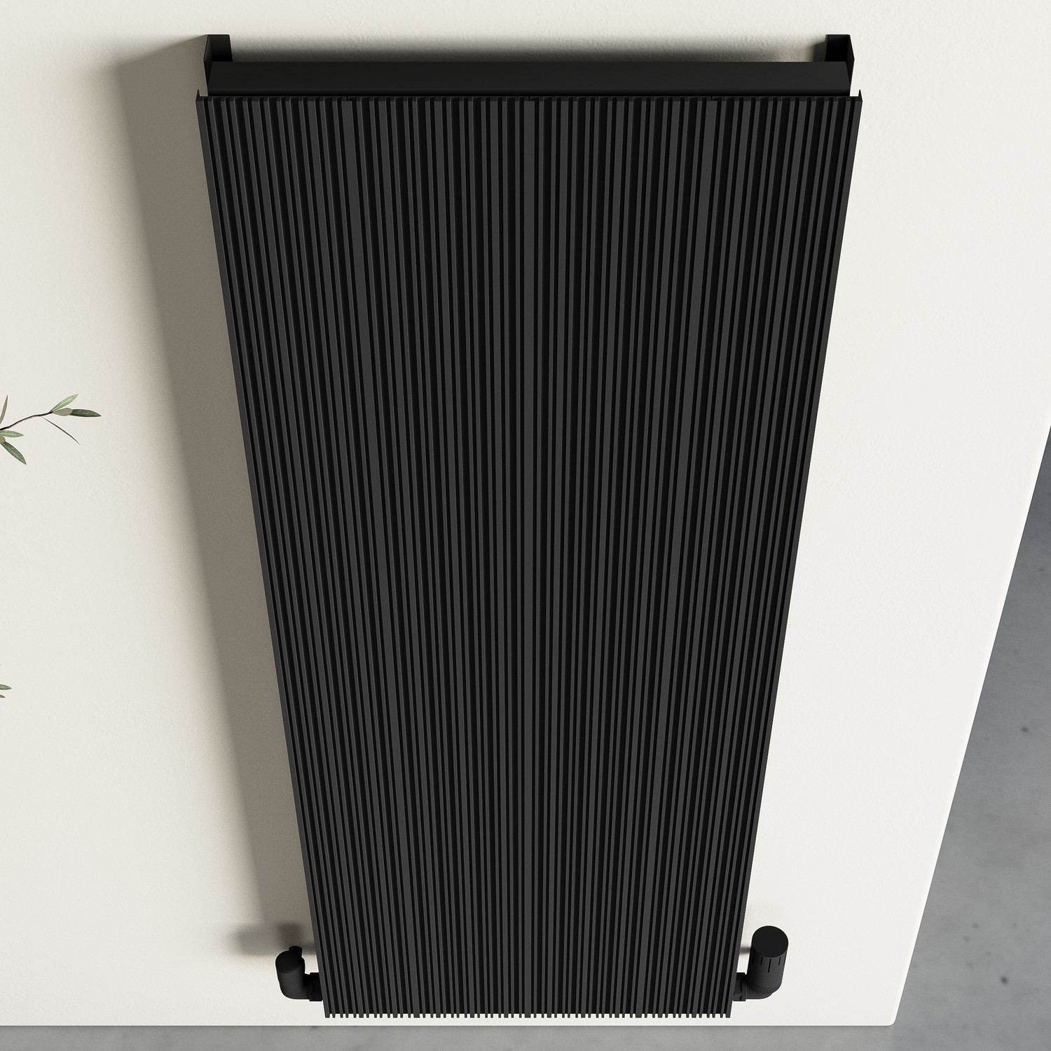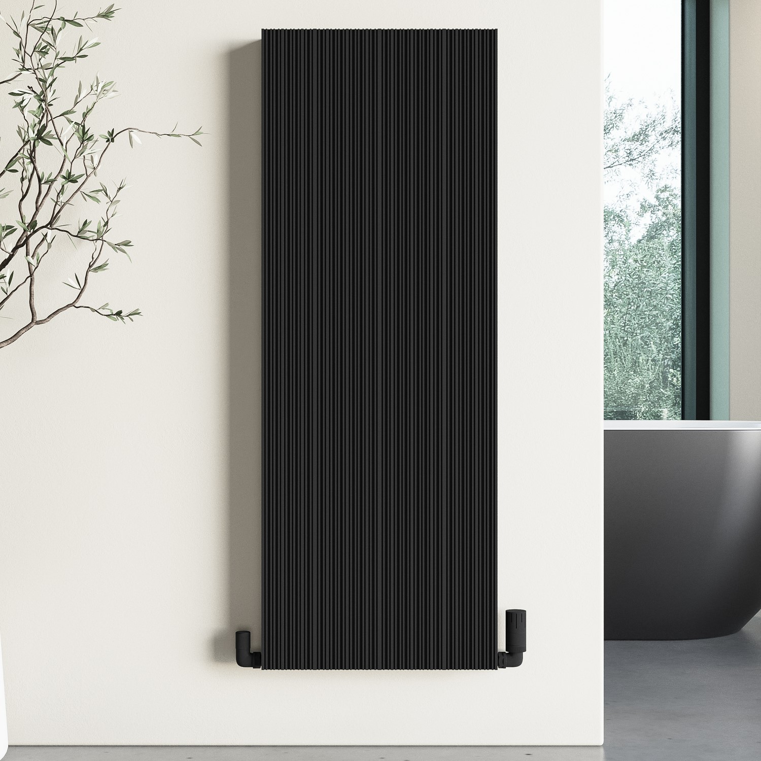 The Laguna sand grain black fluted vertical radiator is a perfect blend of style and practicality for any modern bathroom. Designed as a single panel radiator with fluted detailing, it offers a large heated surface area that maximizes warmth while maintaining a stylish look. Its high BTU output ensures efficient and powerful heating, making it ideal for medium to large bathrooms. The bold black surface finish makes a striking statement in your bathroom, adding a touch of sophistication and elegance. With its sleek, designer appeal and wall mounted design, it not only enhances your décor but also delivers exceptional warmth. The fluted panel serves as a standout design feature, bringing a refined, architectural element to your space. Crafted from durable mild steel, it’s built for long-lasting performance. Ideal for medium to large bathrooms, this single panel radiator offers both aesthetic sophistication and efficient heating.