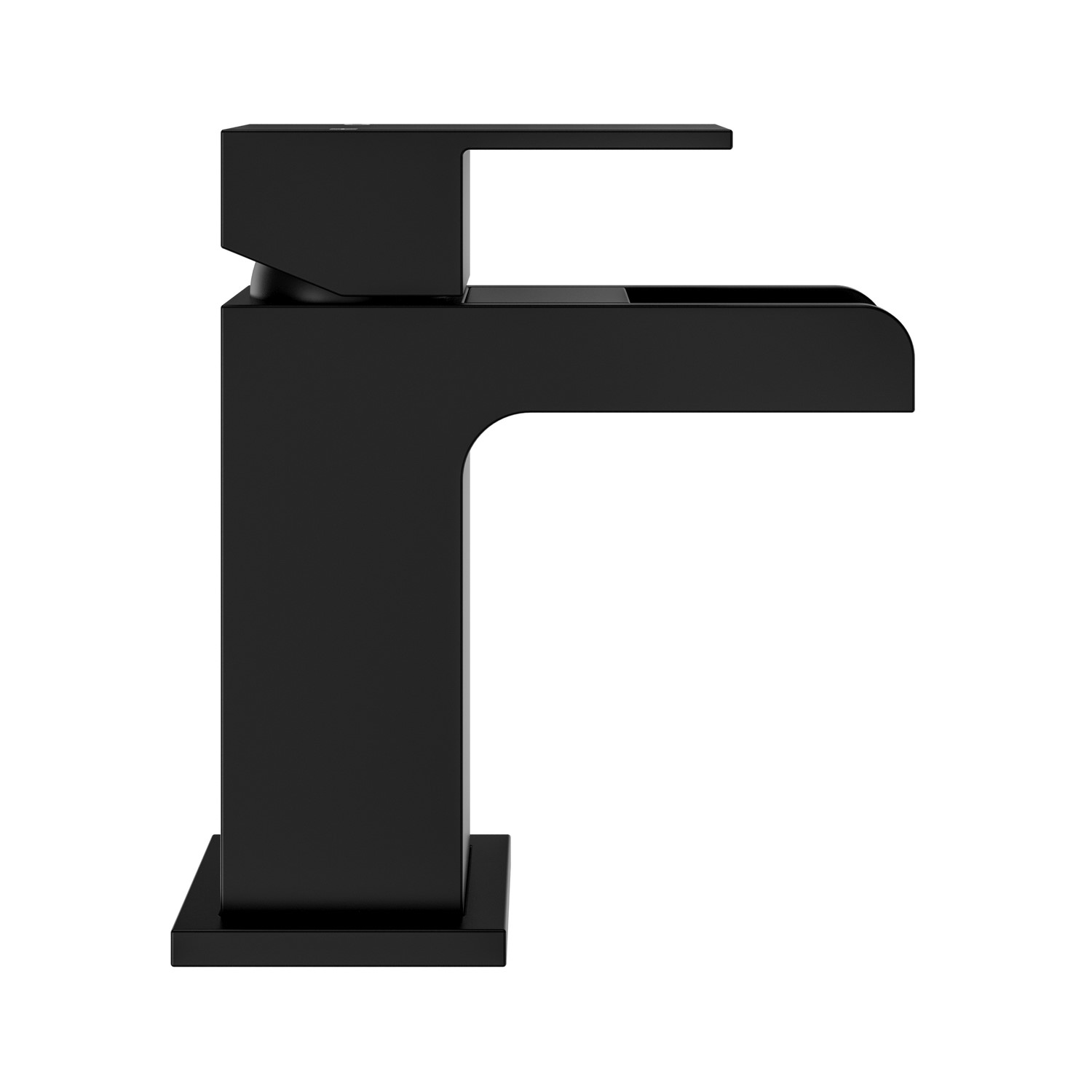 Enhance your bathroom experience with the Quadra matt black cloakroom basin mixer tap. Designed for compact spaces, this modern tap combines aesthetic elegance with functional performance. The standout waterfall spout creates a spa-like flow, while the durable brass construction and electroplated finish ensure lasting reliability. Its smooth single lever control makes adjusting water flow and temperature effortless. Pair it with other items from the Quadra collection to complete your contemporary bathroom look.
