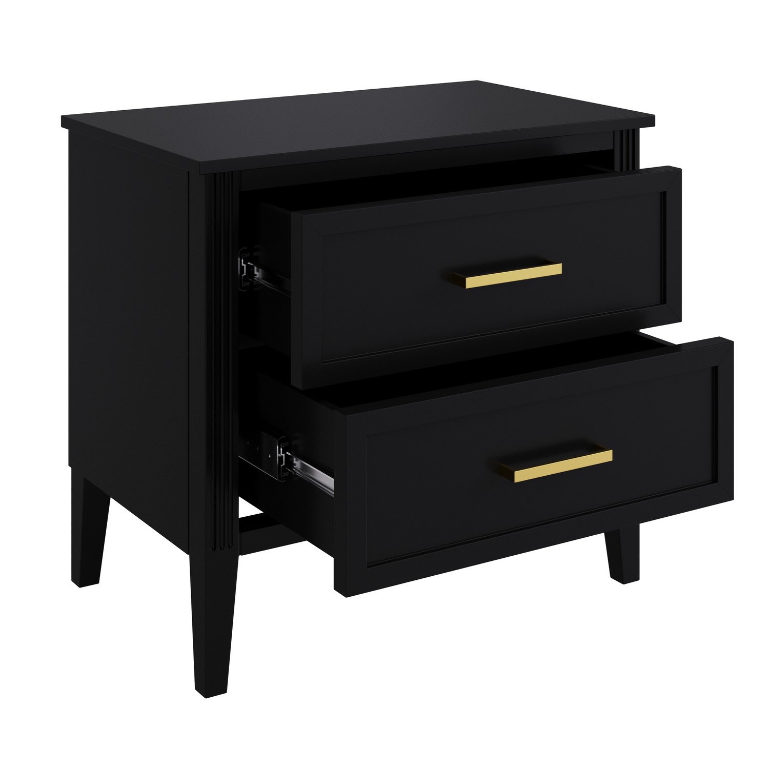 Its classic black finish adds sophistication and versatility, pairing beautifully with a range of bedroom aesthetics—from minimalist to traditional. With its spacious top and extra drawer width, Delilah is the perfect combination of form and function, making it a practical yet elegant addition to any sleep space.