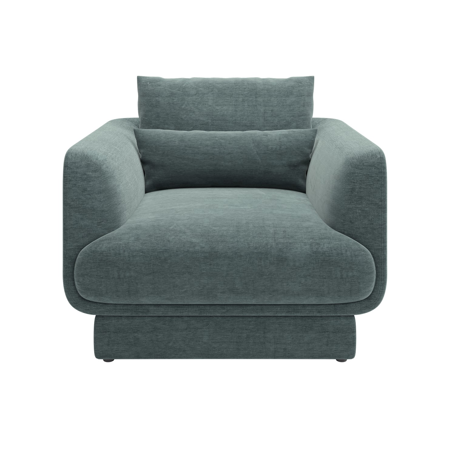 Add warmth and comfort to your lounge, living room, or snug with the Ramses Armchair. Upholstered in soft and cosy blue chenille fabric, it adds a splash of colour to your space. Designed with curved arms and a large scatter cushion, this armchair offers exceptional comfort, perfect for curling up with a book or enjoying quiet moments. The fully upholstered base sits flush to the floor, enhancing its modern, low-profile design and clean, contemporary aesthetic. Ideal as a reading chair or accent piece, this armchair arrives fully assembled, ready to enjoy right away.