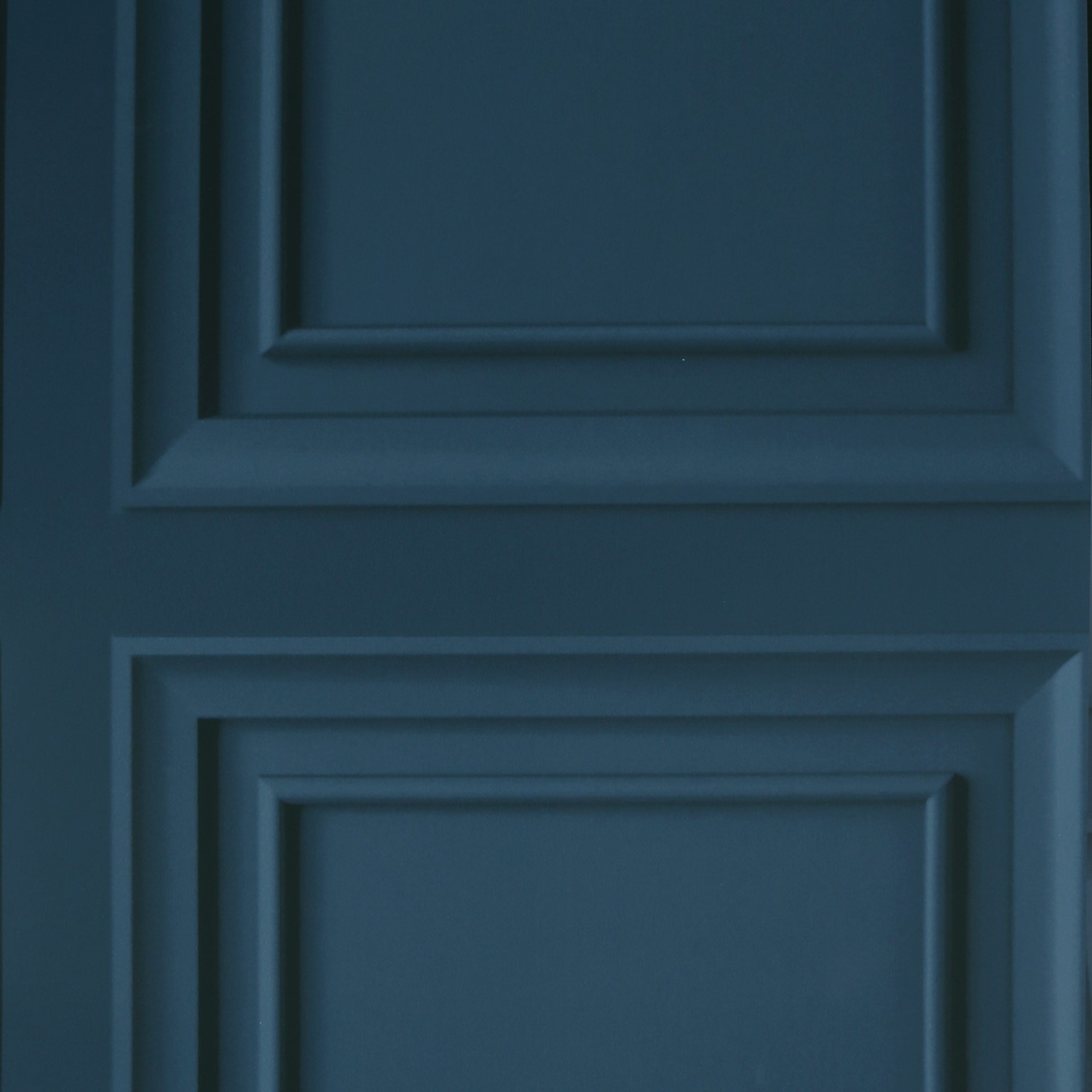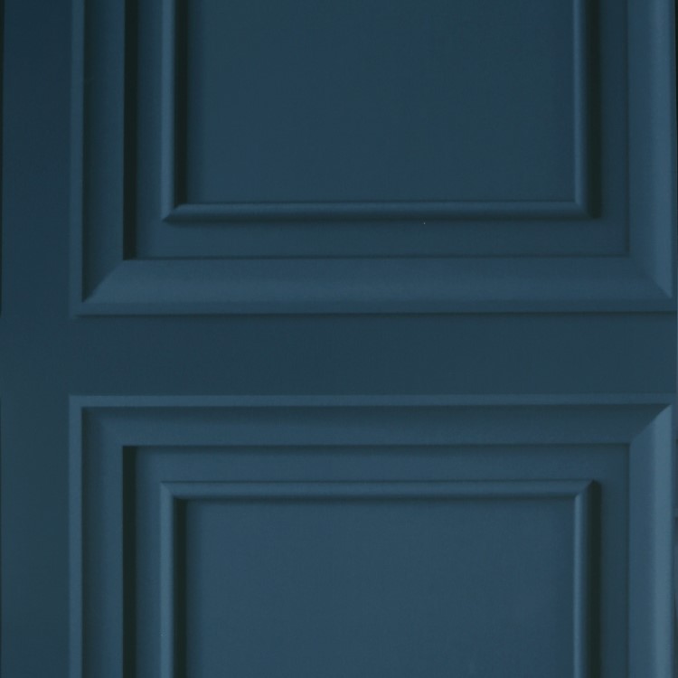 - Luxurious wood panel effect wallpaper in blueberry blue