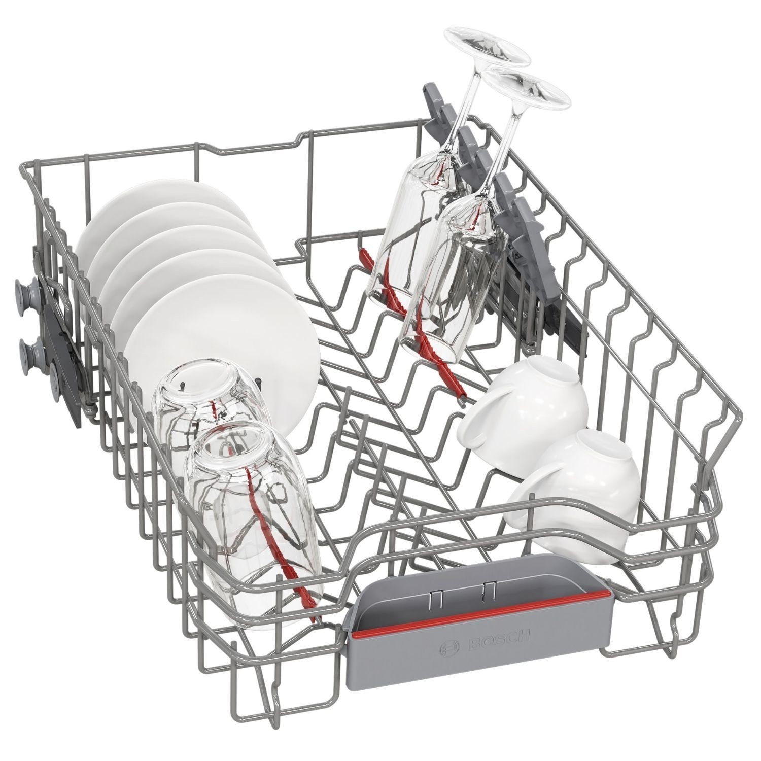 Thanks to the triple Rackmatic system, the height of the top basket can easily be adjusted by up to 5cm, or tilted to just one side so you can fit in large pots and tall stem wine flasses, and still fit your large dinner plates on the bottom rack. And you can do this when its fully loaded, givinvg you more adjustment options and maximum flexibility.