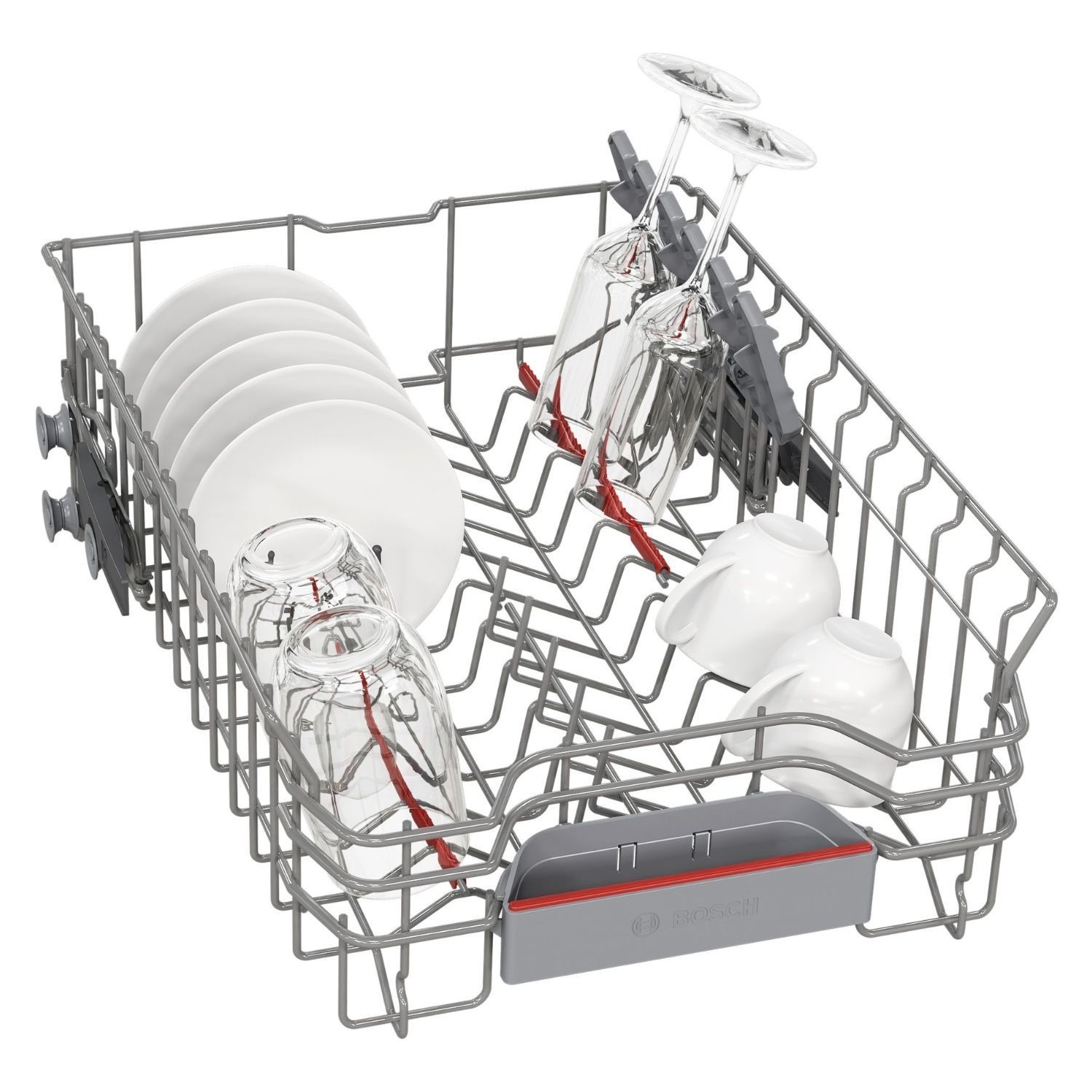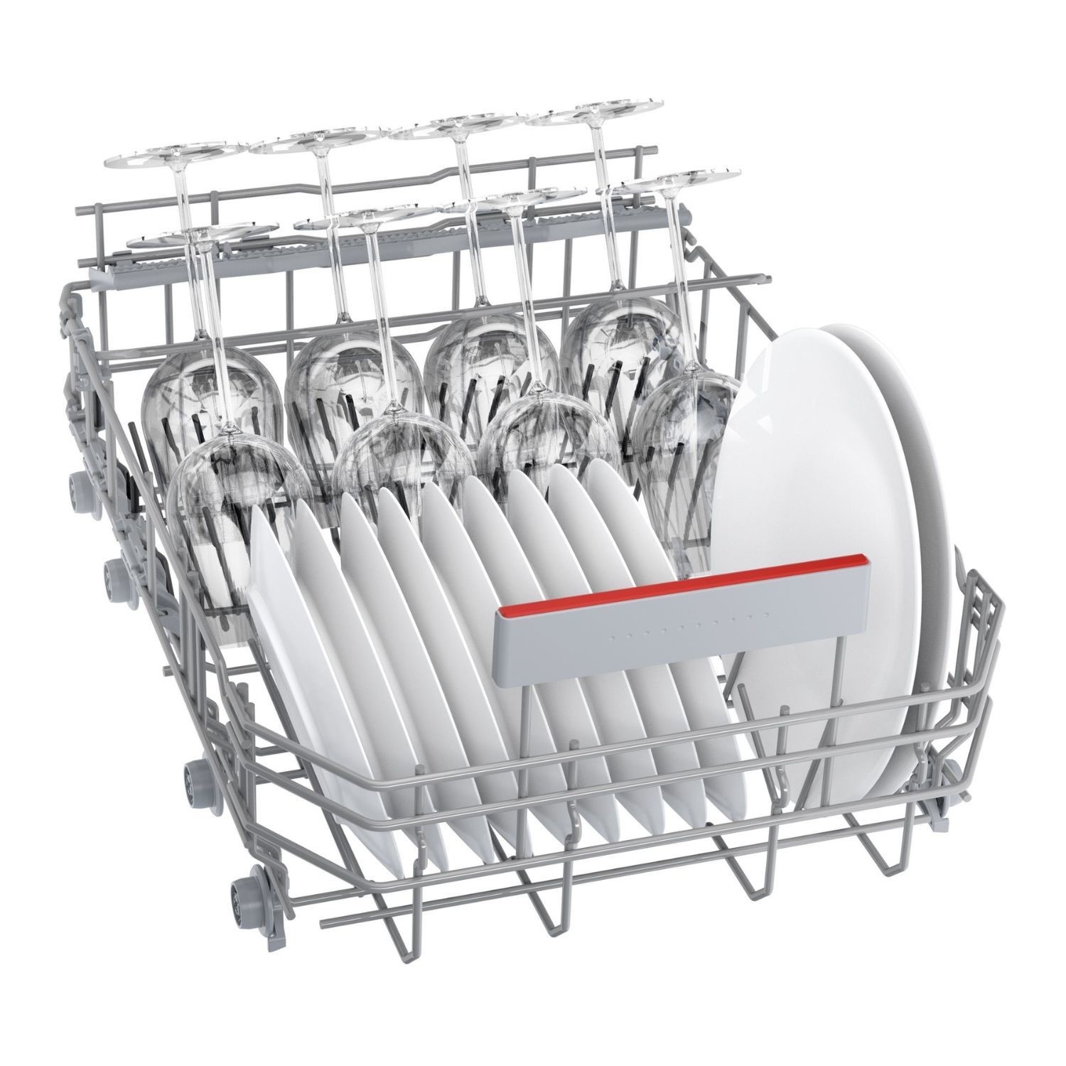 Thanks to the triple Rackmatic system, the height of the top basket can easily be adjusted by up to 5cm, or tilted to just one side so you can fit in large pots and tall stem wine flasses, and still fit your large dinner plates on the bottom rack. And you can do this when its fully loaded, givinvg you more adjustment options and maximum flexibility.