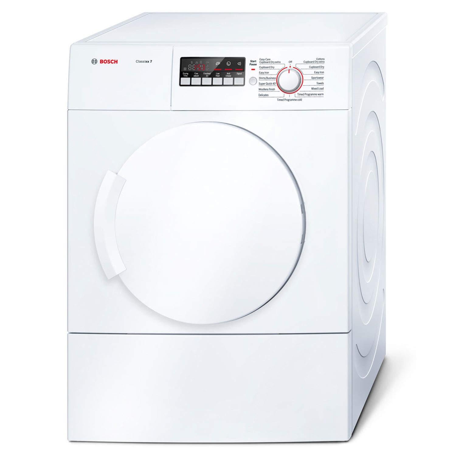 Featuring a capacity of 7 kg the Bosch WTA74200GB is ideal for larger families. Drying around 21 T-shirts per load. With an LED display and a fully electronic controls with a variety of programmes to suit your load drying your clothes has never been easier.