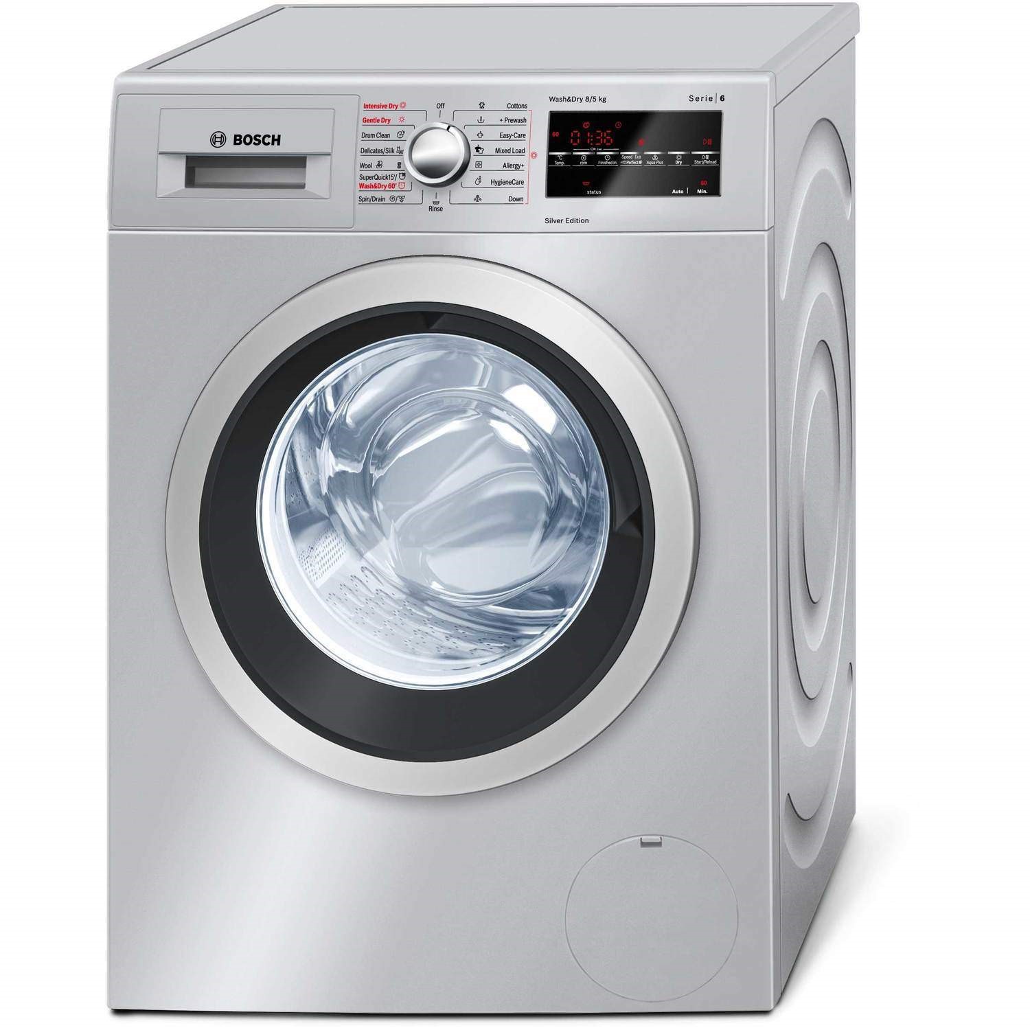 - Capacity: 8 kg washing, 5 kg drying