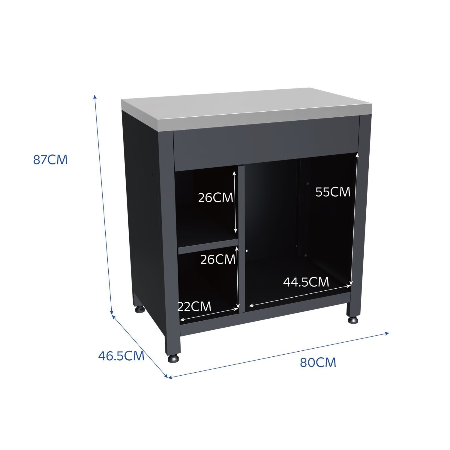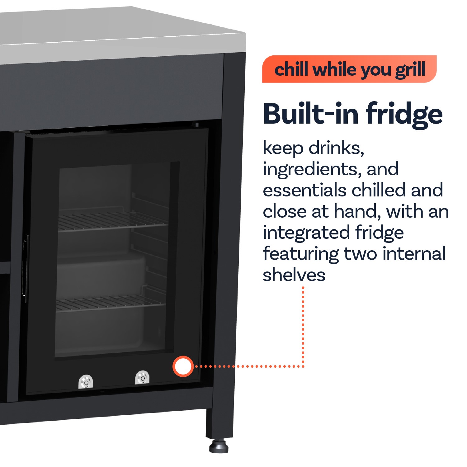Finished with durable stainless steel surfaces, powder-coated cabinets, and ample storage, this outdoor kitchen is built for performance and longevity. The modular design allows each unit to work seamlessly together while giving you the freedom to reconfigure or expand your setup as your outdoor space evolves.