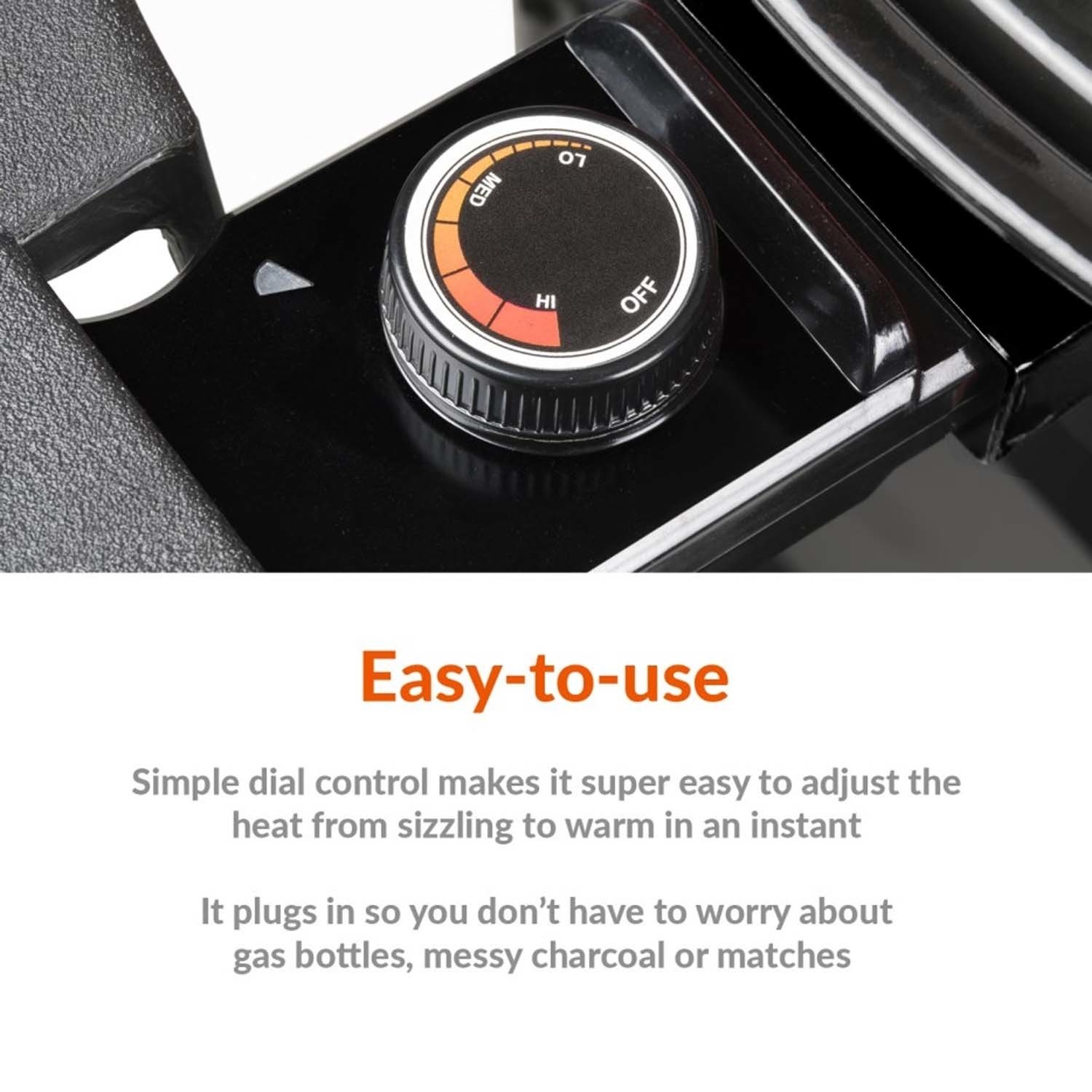 - Effortless cooking with the flick of a switch - no gas bottles, messy charcoal or matches required!