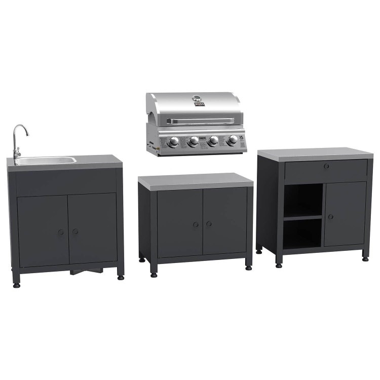 Impress your guests and transform your patio or garden into a fully functioning outdoor kitchen and with this fully equipped BBQ set up. The four burners are perfect for grilling juicy burgers and sausages to succulent chicken and kebabs. The handy warming rack help to keep items warm and can even be used to toast buns. Each burner is controlled independently and lit via a pulse ignition to make lighting simple. Plus, there’s a lid-mounted thermometer to monitor the temperature inside. Once you’ve finished, the removable grease tray can be easily cleaned - ready for its next use.