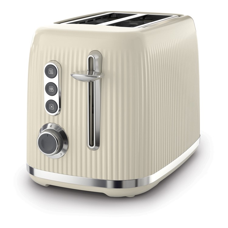 Bring daring style to your kitchen with the Breville Bold 2 Slice Toaster, featuring a glossy ridged textured finish with high shine chrome accents and illuminated controls for ease of use.