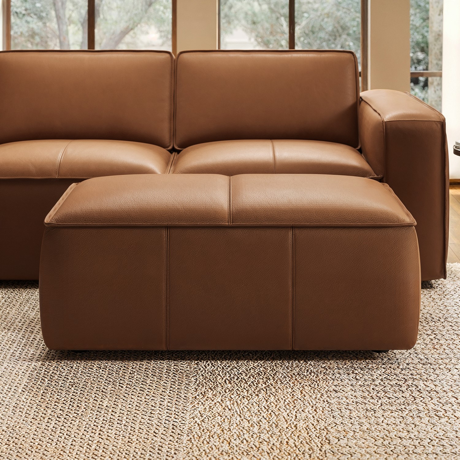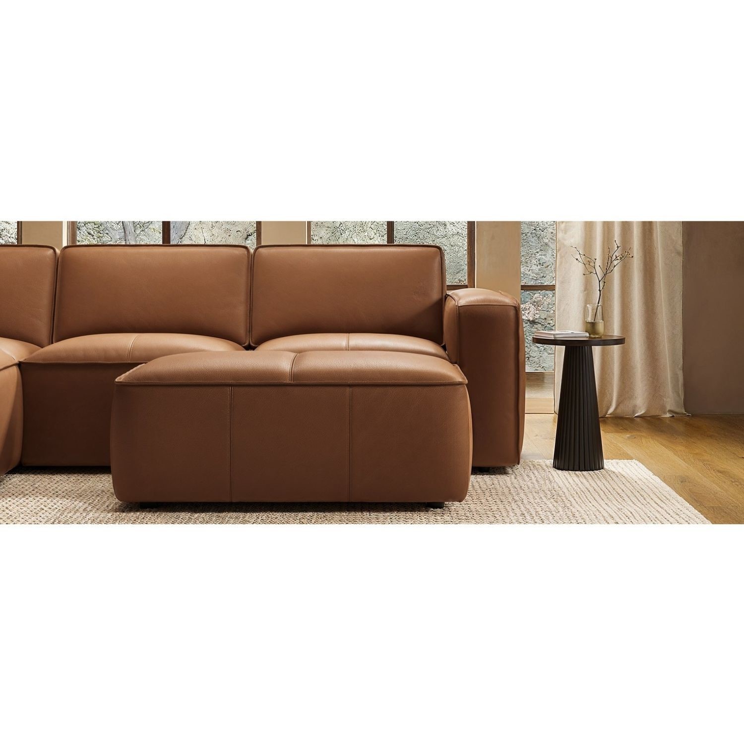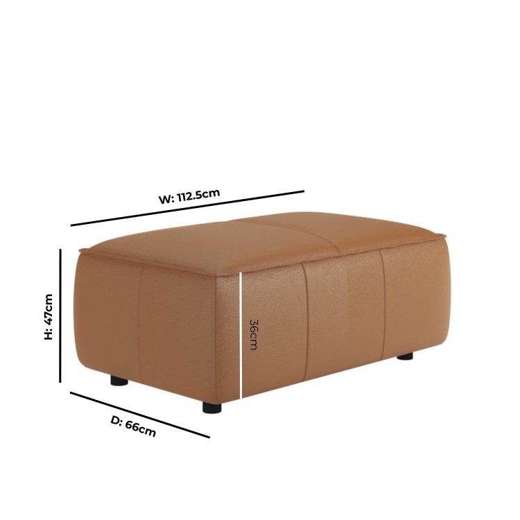 Add the perfect finishing touch to your living space with the Samuel Footstool, the perfect match to the Samuel Chaise Sofa. Crafted with a sturdy acacia and plywood frame, it’s upholstered in genuine tan brown leather with a fine grain, matt finish, and subtle texture. Pleated details, double stitching, and piping along the edges highlight its refined craftsmanship, while foam filling ensures maximum comfort. With wide square edges and a clean, modern silhouette, it’s as versatile as it is stylish — ideal for relaxing, extra seating, or use as a chic coffee table alternative.