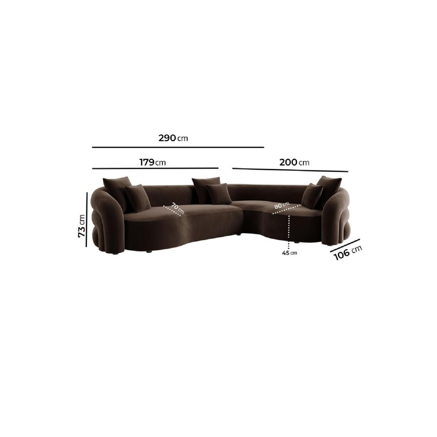 The Zuri 4-seater Curved Corner Sofa combines style and comfort with its inviting curves and layered cushioning, creating a cosy and classy feel in any room. Perfect for corners, this beautiful sofa is made with soft chocolate brown velvet fabric and comes with six matching scatter cushions for added comfort. Its modern curved shape brings a fresh, contemporary look, making it perfect for relaxed lounging and the ideal centrepiece for both stylish and welcoming living spaces.